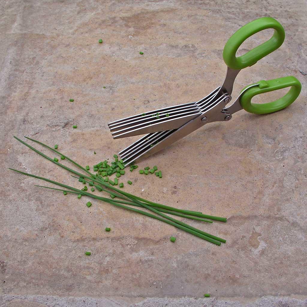 Handy and useful herb scissors for snipping through kitchen herbs rather than incessantly chopping away.
