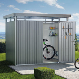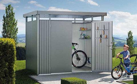 Wheel equipment in and out effortlessly. Only suitable for sheds with double doors with floor frame