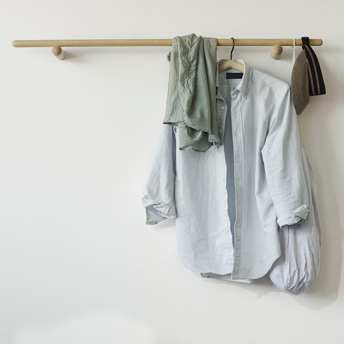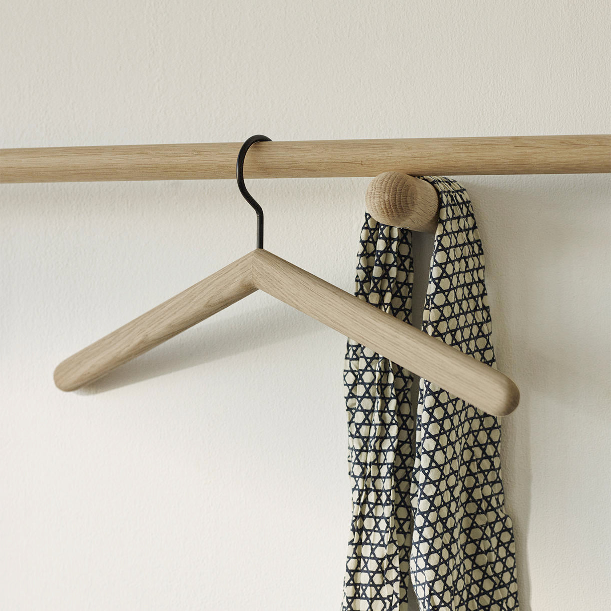 The George coat rack embodies the collection's Nordic/Japanese minimalist design aesthetic - its light appearance is achieved through minimal materials, slender proportions and modest detailing.