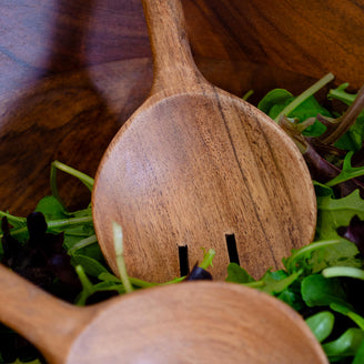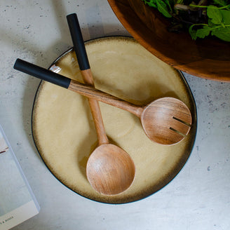 Scandi styled wooden salad servers, perfect for alfresco entertaining.