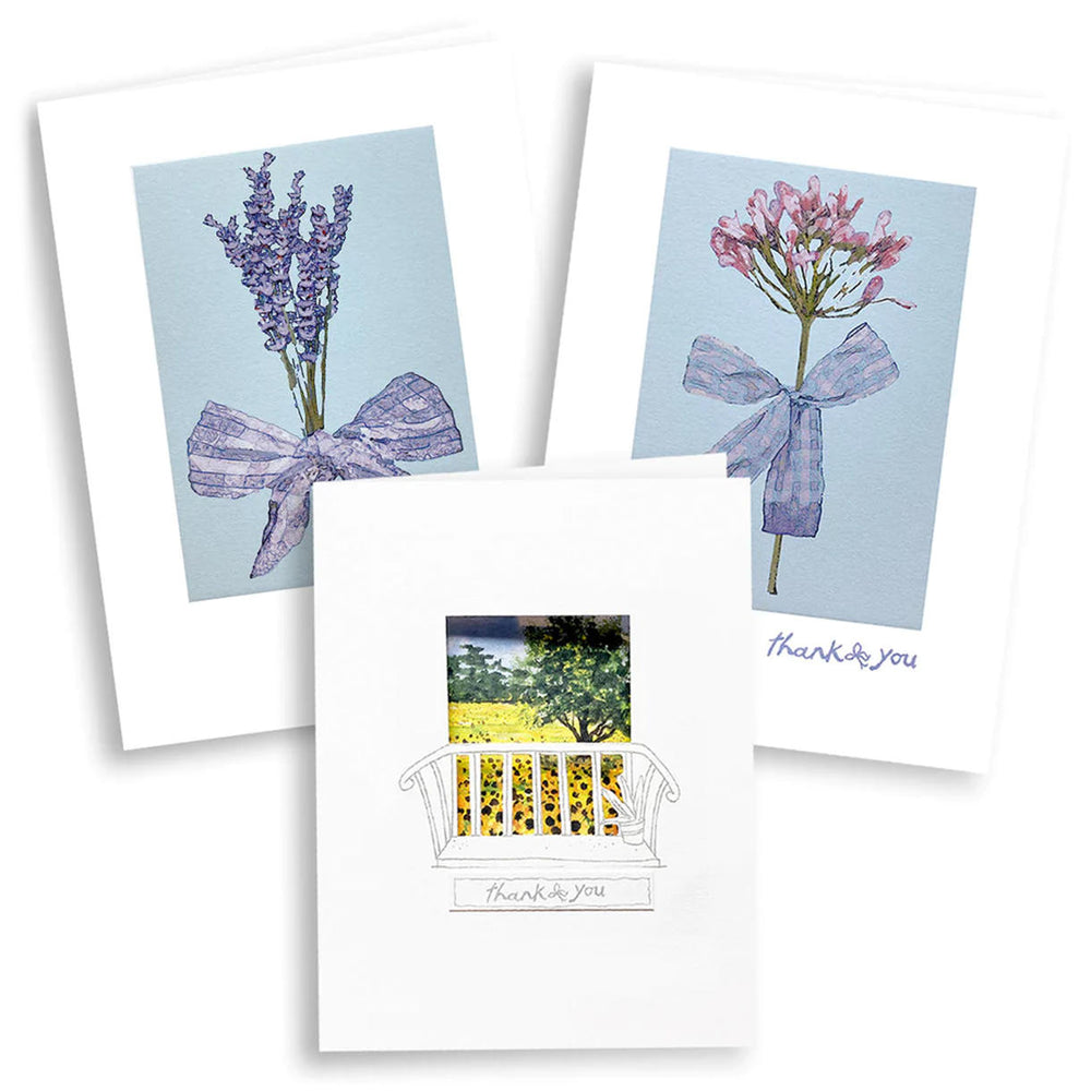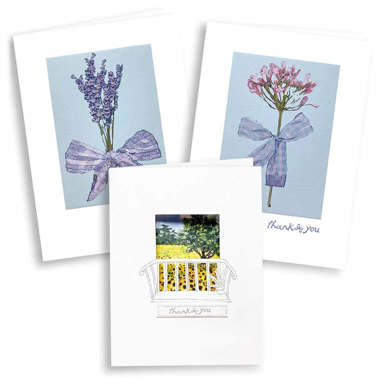Dilly Dilly and Gingham each contain 6 cards each with the same design printed on thick uncoated card and 6 light blue envelopes, and are blank on the inside for your own message.