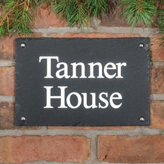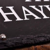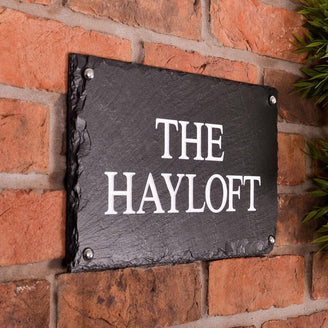 The house name will be sandblast engraved into the slate in your choice of font and can be left unpainted as standard for a natural, yet beautiful effect, or there is the option to have your house sign hand painted in white if you prefer a more defined finish.