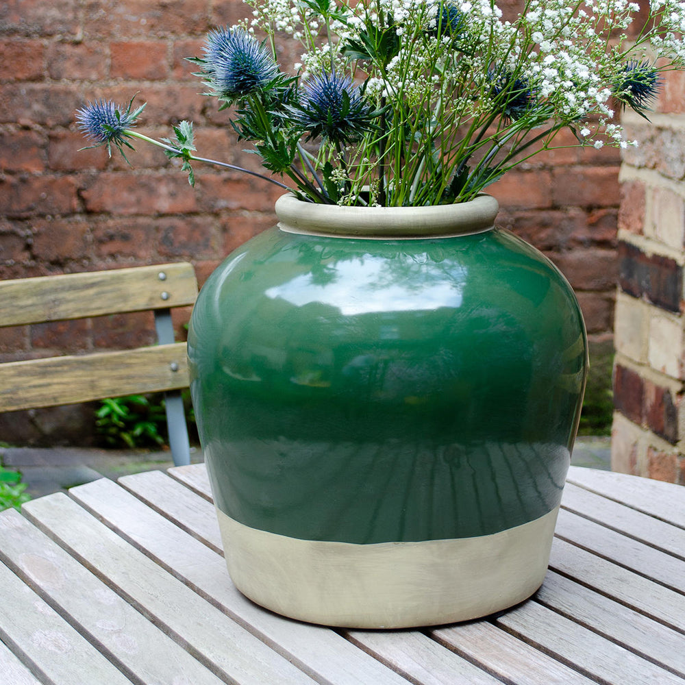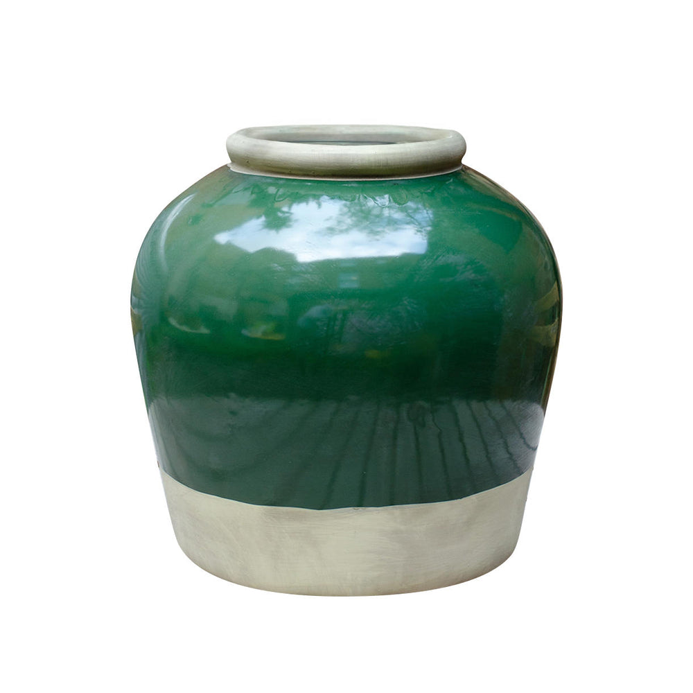 Olive Green Glazed Stone Urn