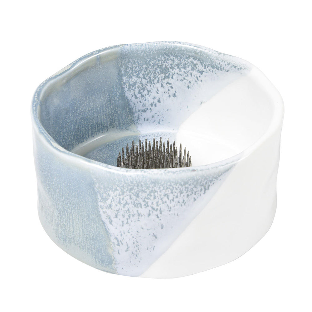 Containing a metal 'frog' spike this pot makes it very easy to create elegant flower arrangements in a Japanese style.
