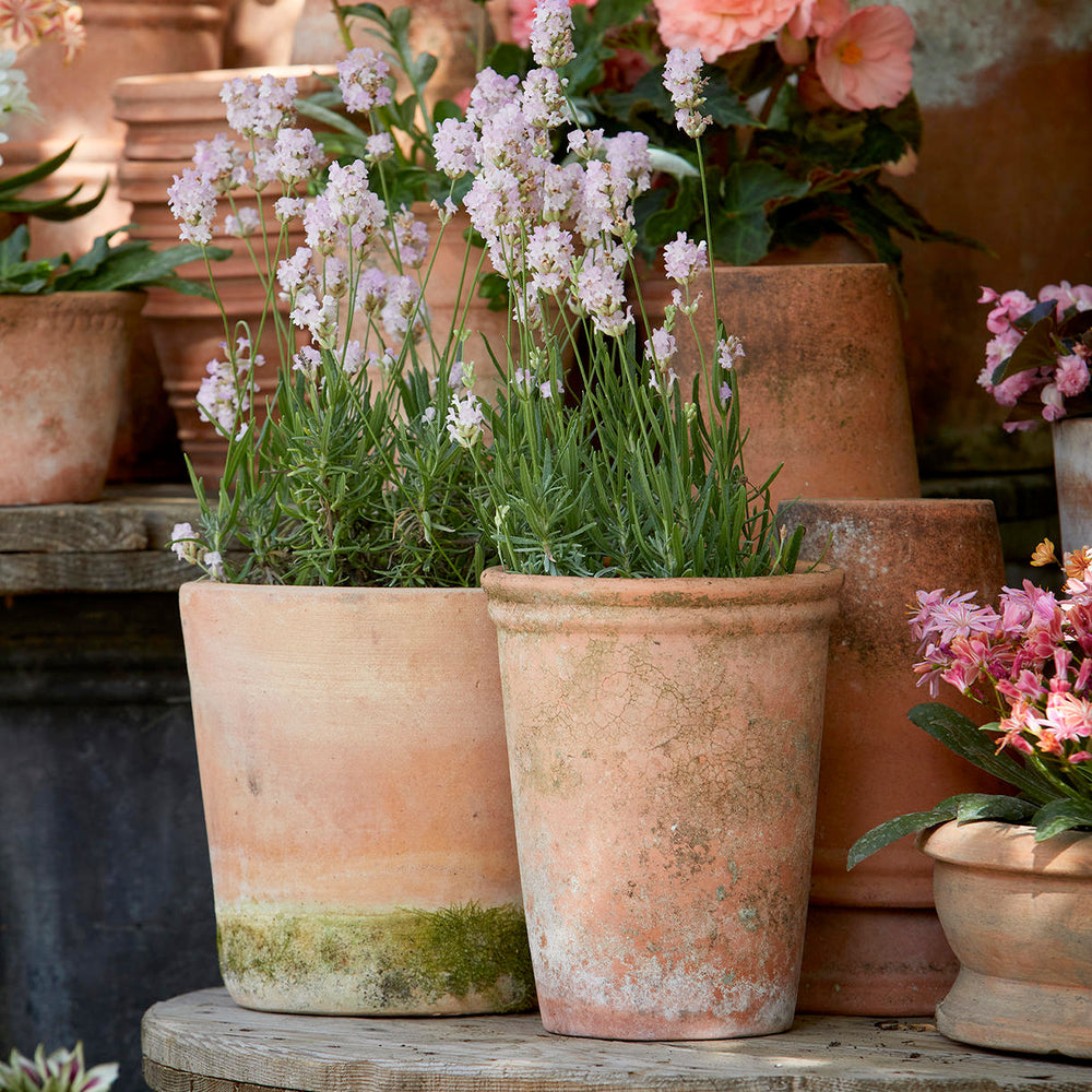 Try a number of the pots grouped together outside during the summer months to a create romantic display of pretty plants on etageres.