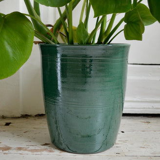 This indoor planter has a simple classic shape and the deep tropical emerald colour is the perfect foil for any large indoor plant.