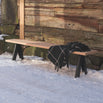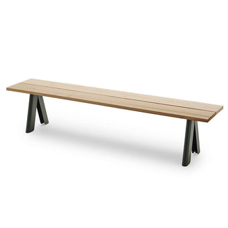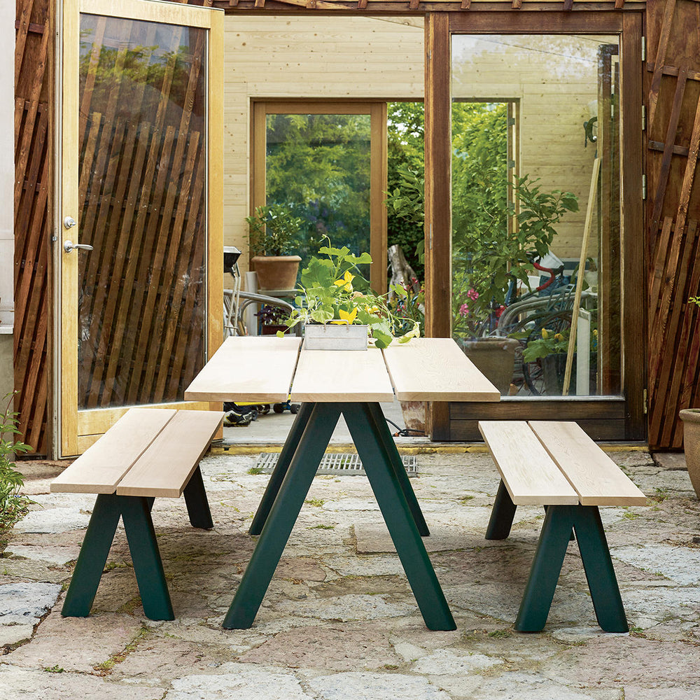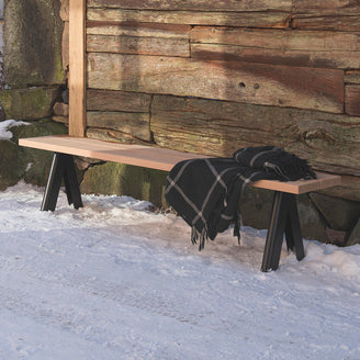 The natural bench tops are made from Western Red Cedar with a powder coated steel frame.