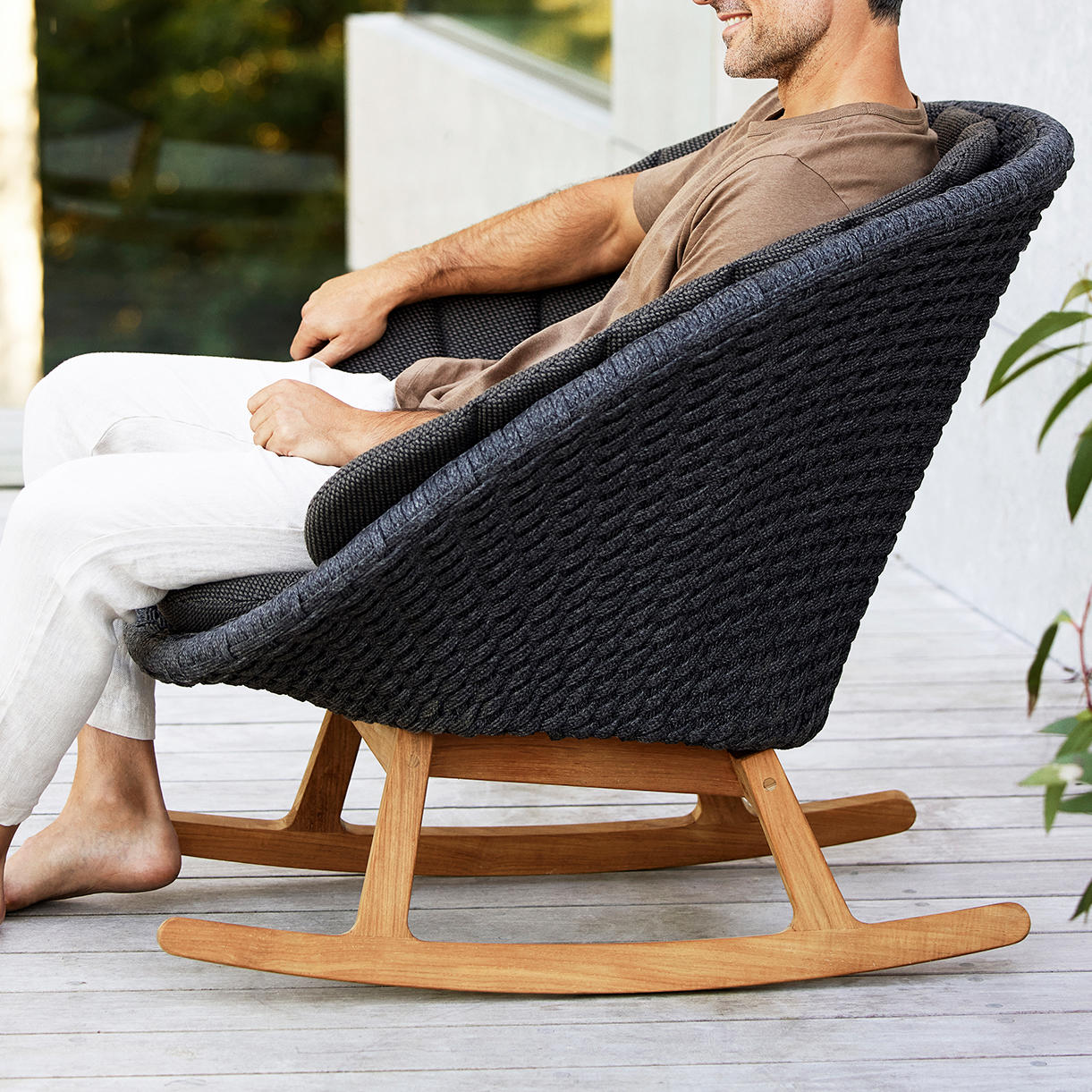 The rocking legs are made from teak and the cosy seat is weaved in Cane-line Soft Rope.