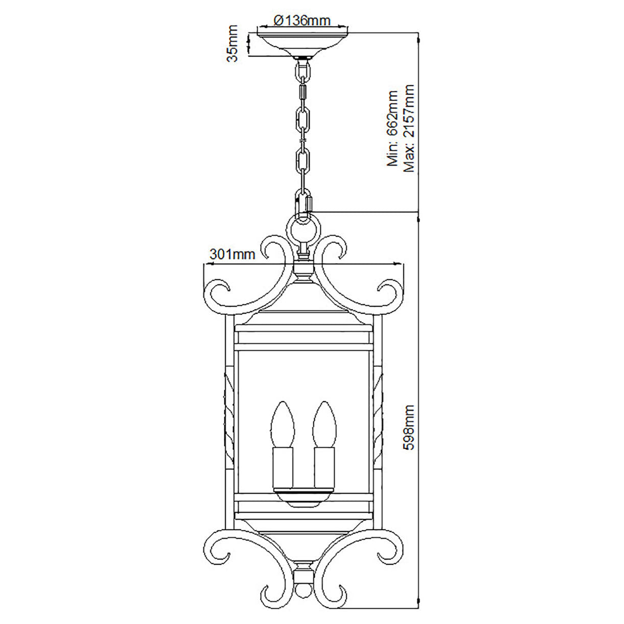 Made in aluminium with twisted hand-forged scrollwork and wrought iron detailing the Casa outdoor hanging lantern reflects an old world charm.