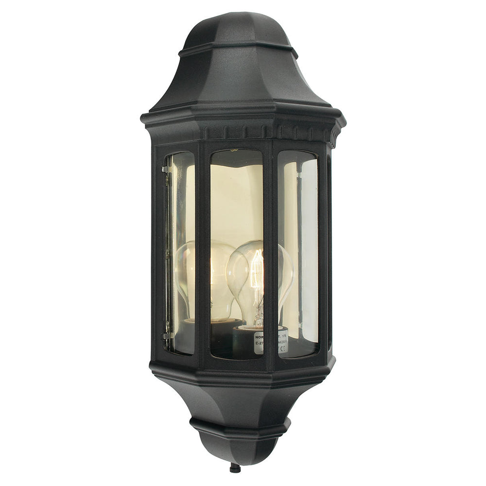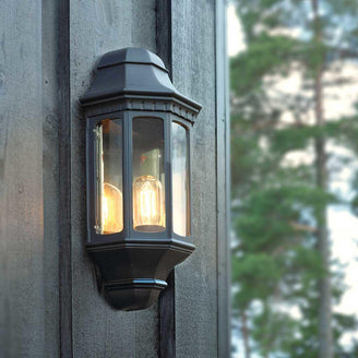 The Malaga half wall lantern exemplifies the sophistication of traditional outdoor lighting, perfect for front porches and doorways. It is available in standard and medium sizes in 2 different finishes; Black and White.
