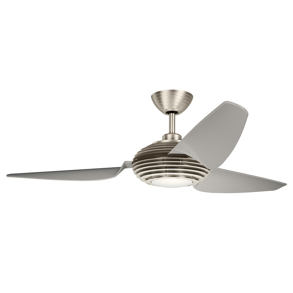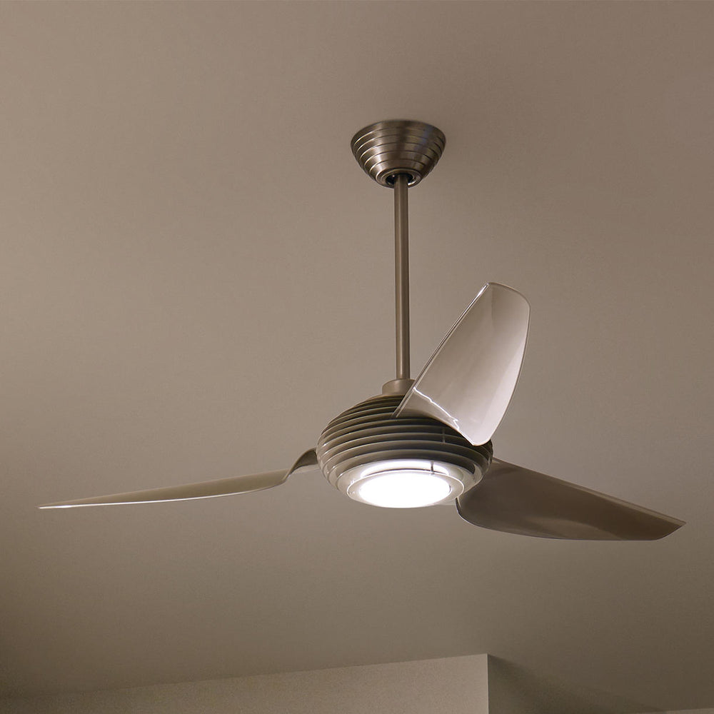 This brushed stainless steel ceiling fan combines smooth textures and materials in high-tech harmony.