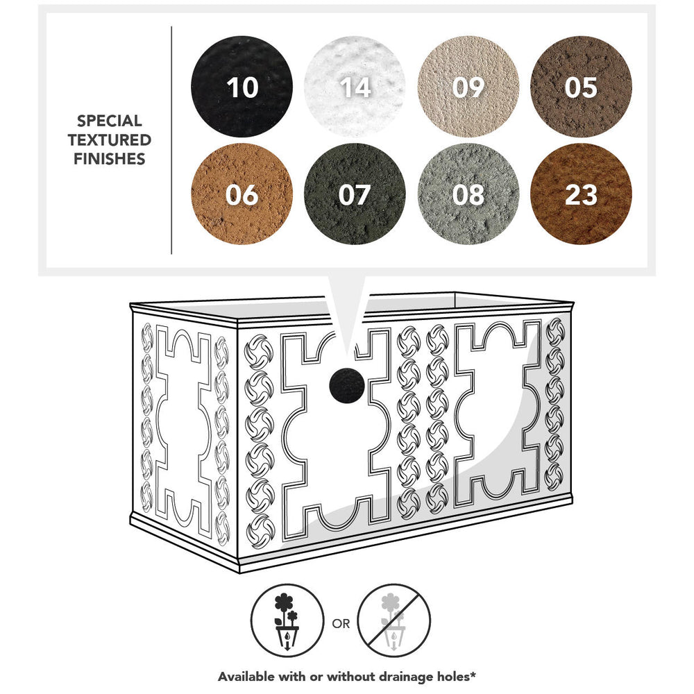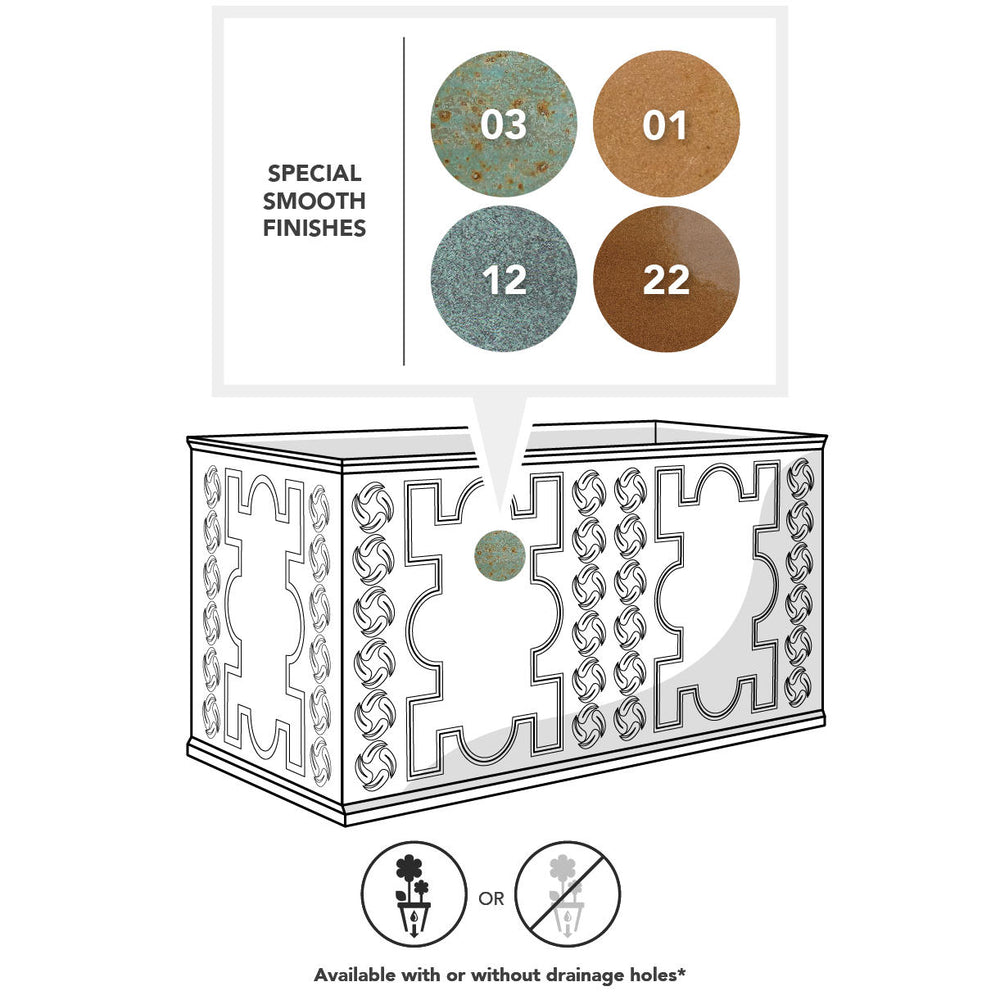 With Georgian style and detail, these planters are lightweight, durable and frost resistant, making them ideal for use on balconies and terraces, as well as patios and courtyards.
