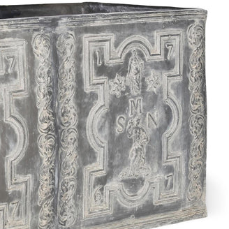 This tank is designed to look like an antique lead tank, dated 1767. It is complete with imperfections and the authentic wear and tear that you would expect from a lead item from this era.