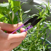 The snipper has razor sharp blades which are perfect for harvesting herbs and the steel herb stripper makes it simple to harvest lots of fresh, fragrant herb leaves. Simply cut a stem from your herb plant and pull the end of the stem through the appropriately sized hole. The leaves are easily removed, much less fiddly than fingers.