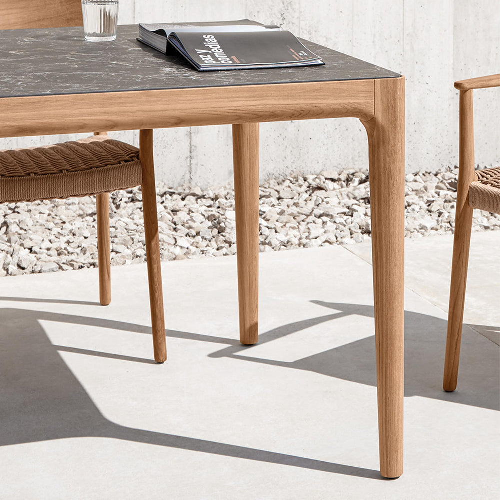 Beautifully crafted from teak and adorned with a choice of ceramic tops, the outdoor dining tables in this range seamlessly blend natural and tactile materials into one refined element.
