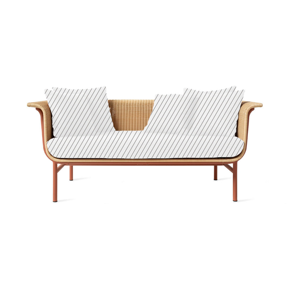 The soft curves of the 2 seater sofa allows you to relax in style and comfort. The combination of the warm wicker and the on trend powder coated aluminium frame allows a conversation between the craftwork on one hand and the industrial processes on the other.