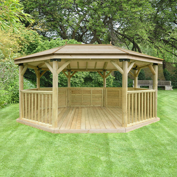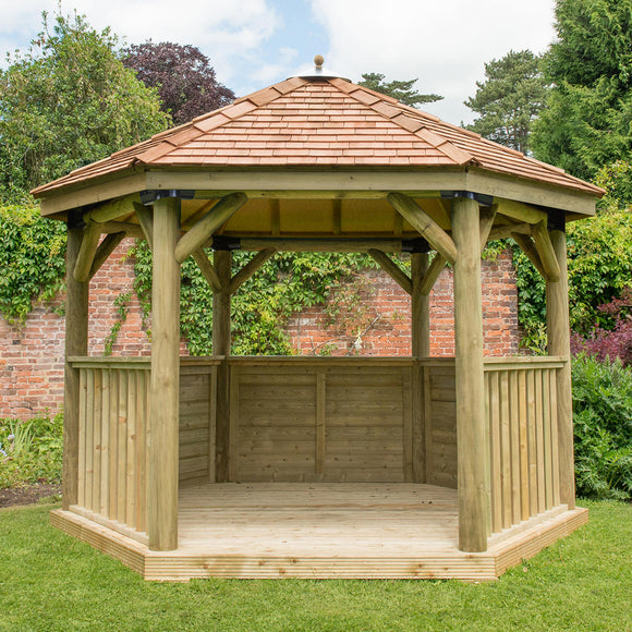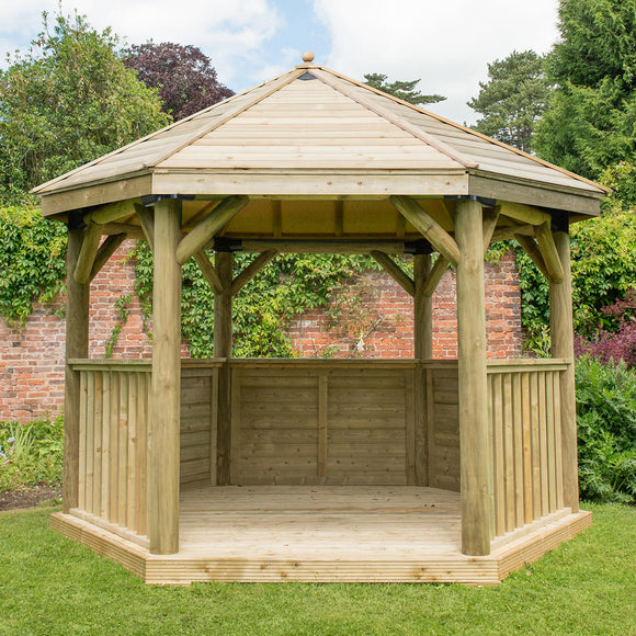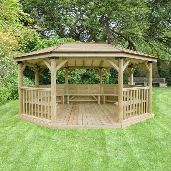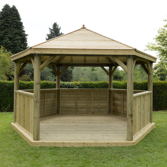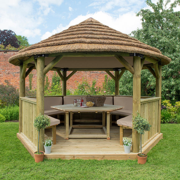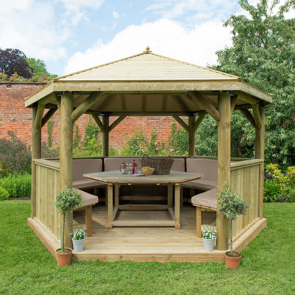 Installation includedFurnished Timber Roofed Hexagonal 4m Gazebo