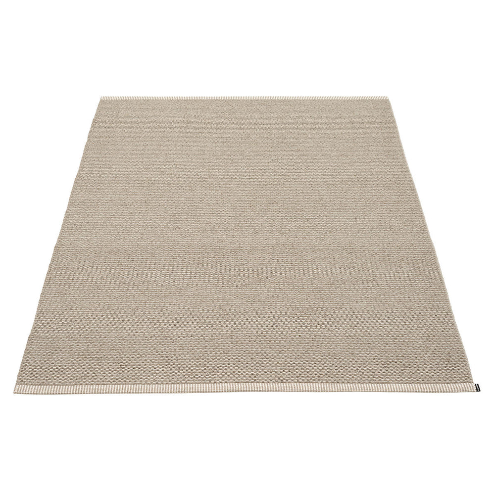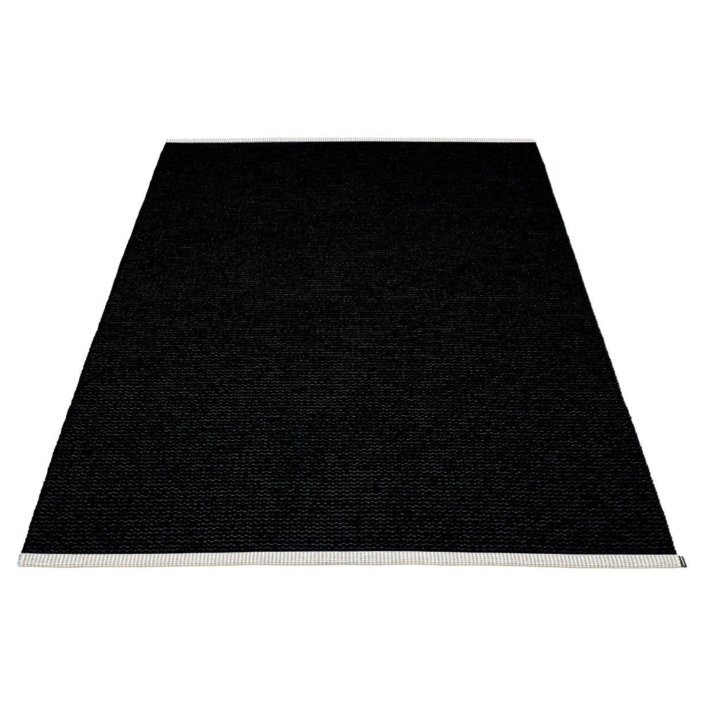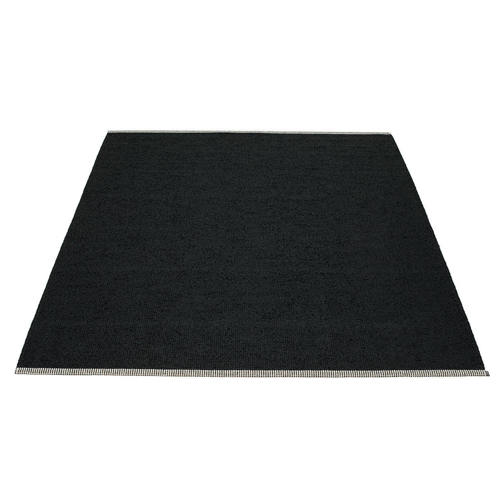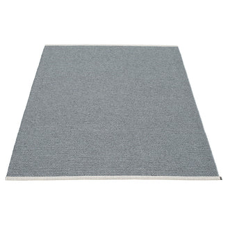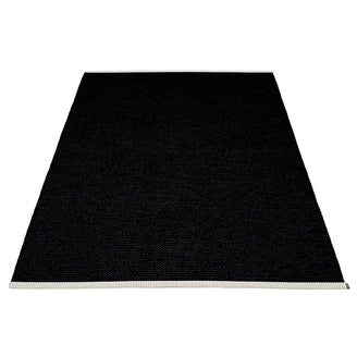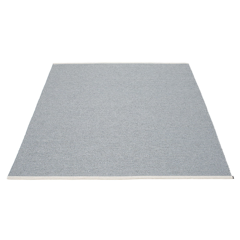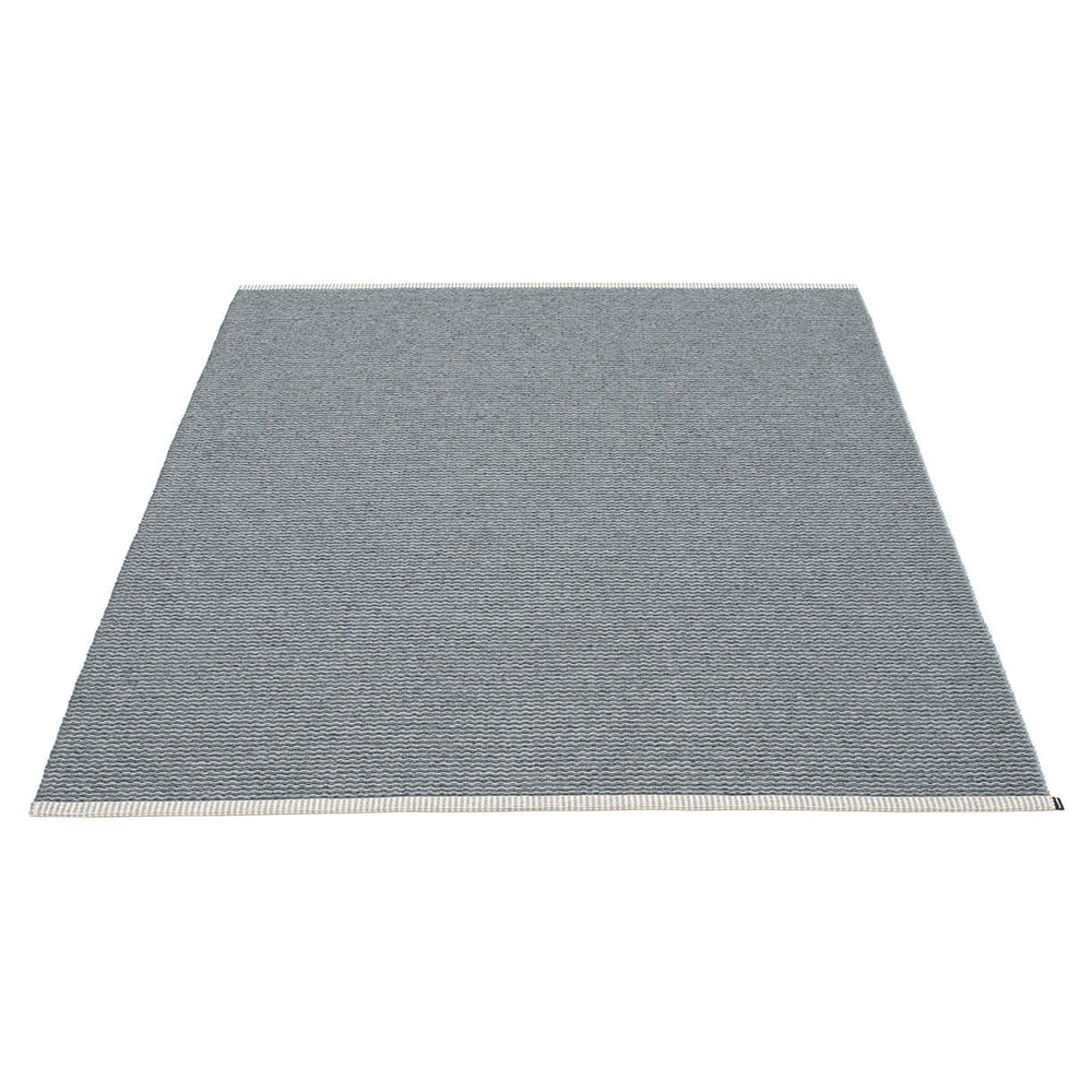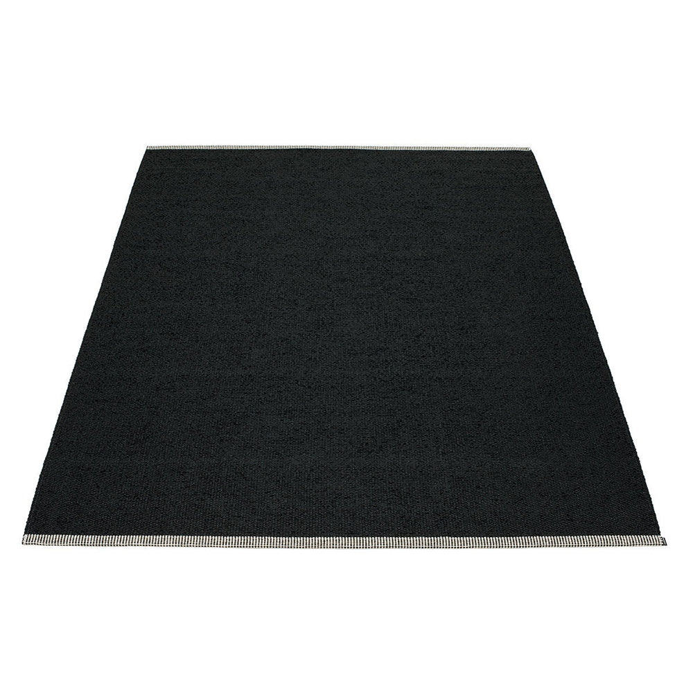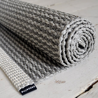 Made in Dalarna, Sweden. Woven on a traditional loom using wooden shuttles. Very practical and easy-to-care-for rug in Swedish manufactured PVC. Welded ribbon for strength and durability, with embossed Pappelina logo, at both edges.