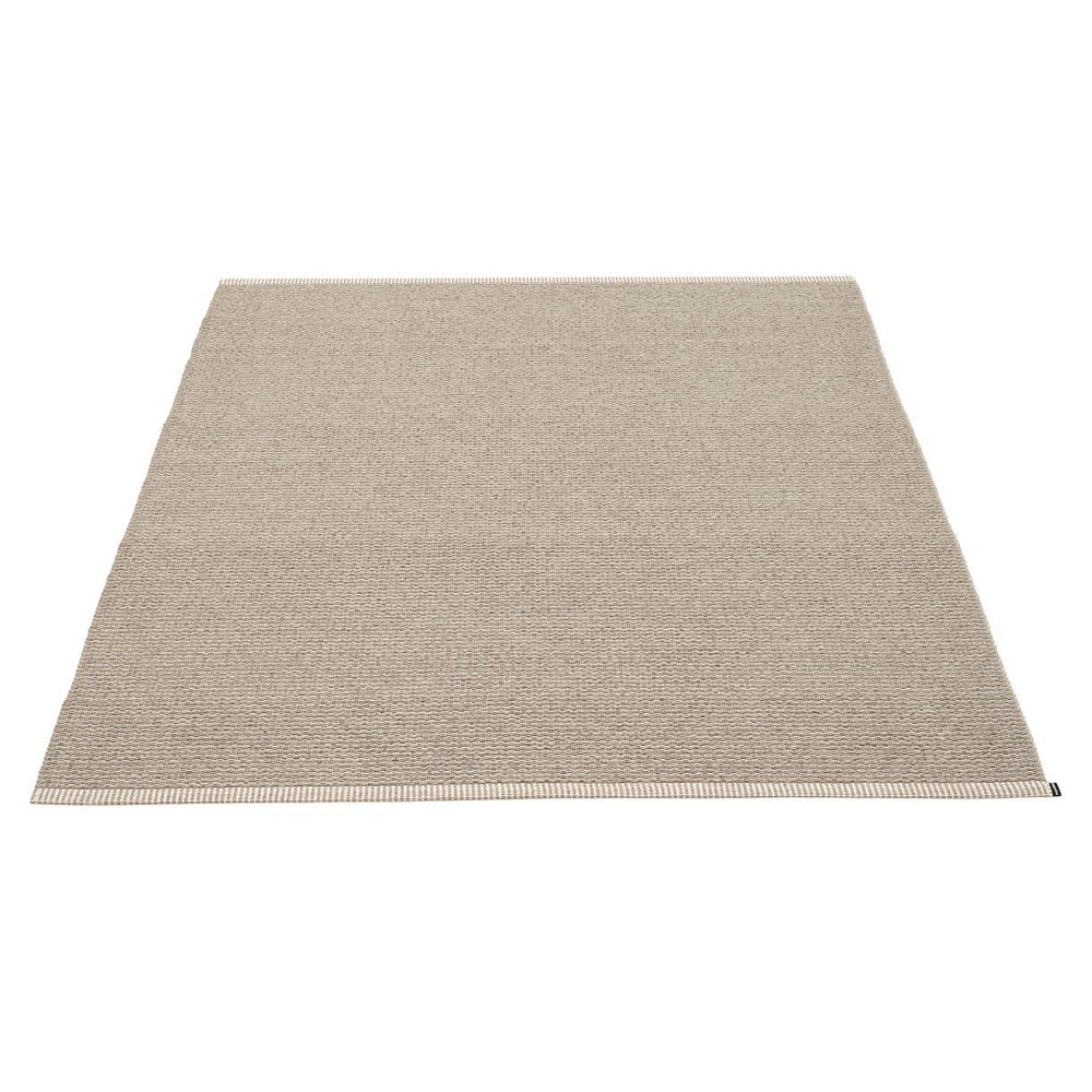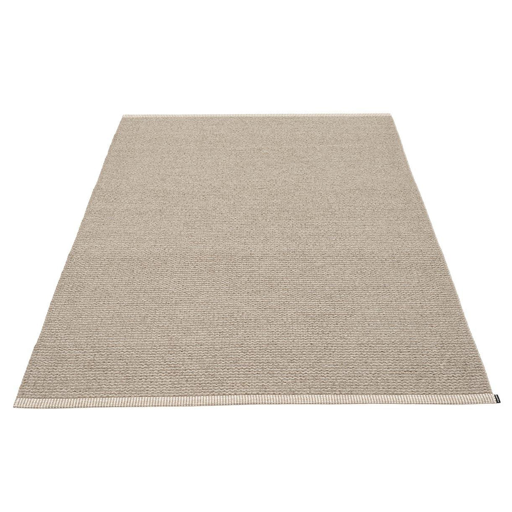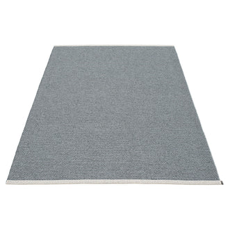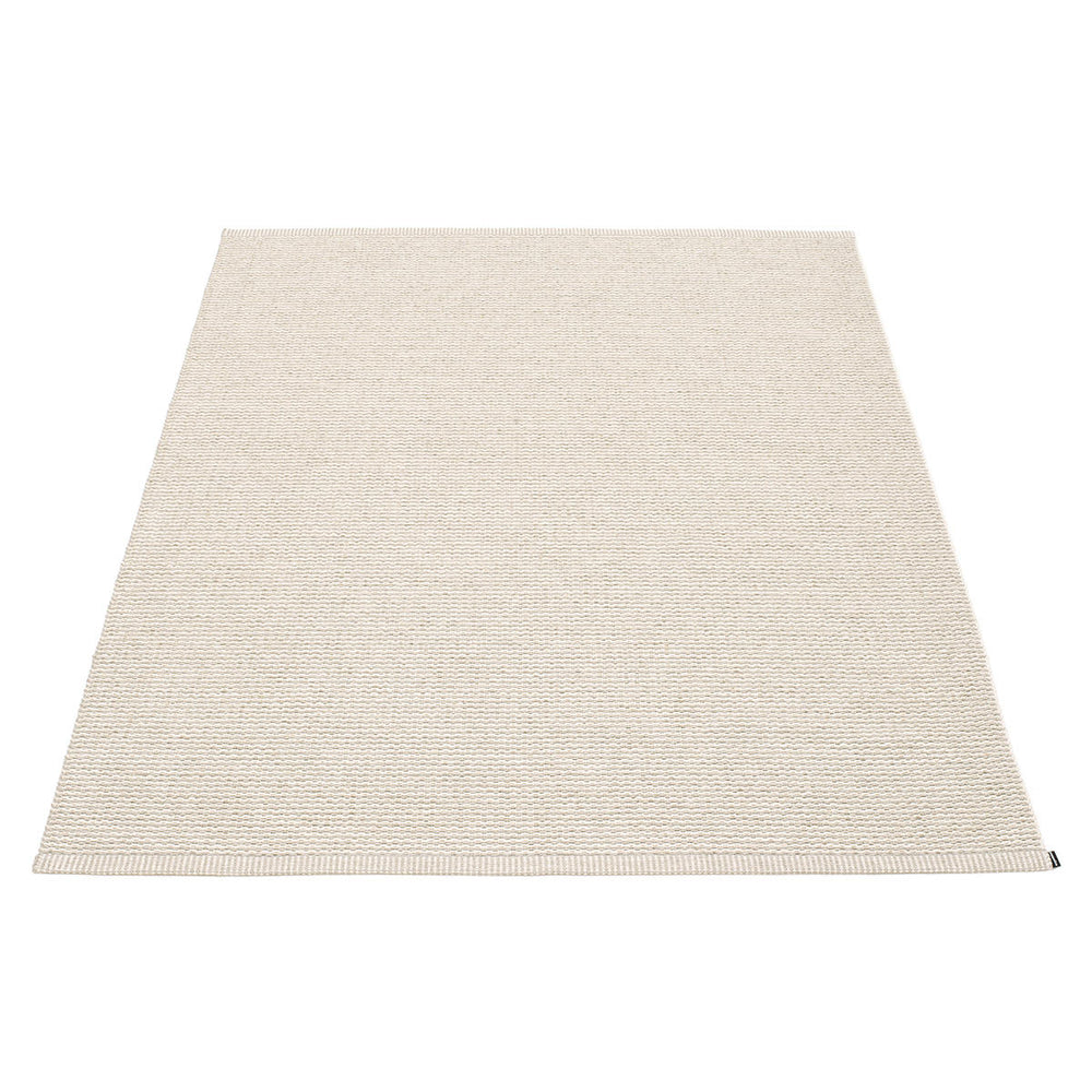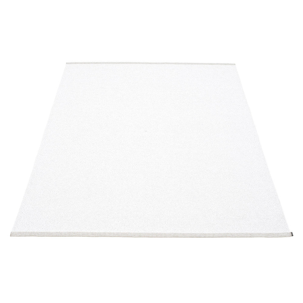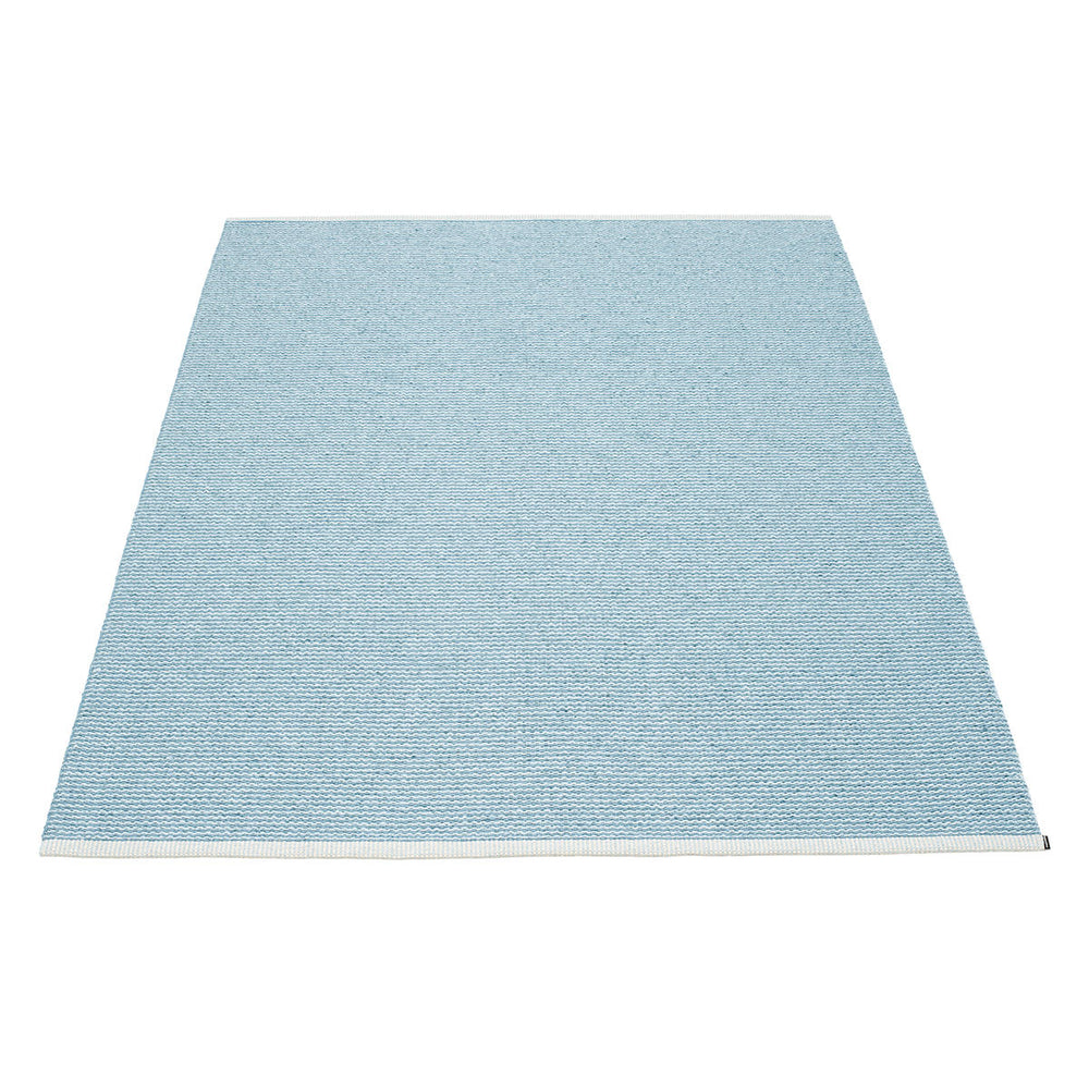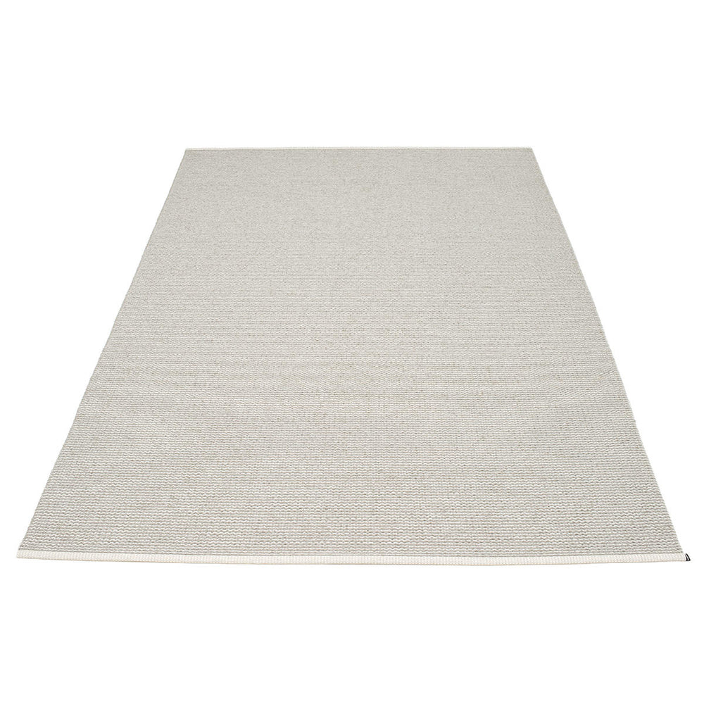 Made in Dalarna, Sweden. Woven on a traditional loom using wooden shuttles. Very practical and easy-to-care-for rug in Swedish manufactured PVC. Welded ribbon for strength and durability, with embossed Pappelina logo, at both edges.