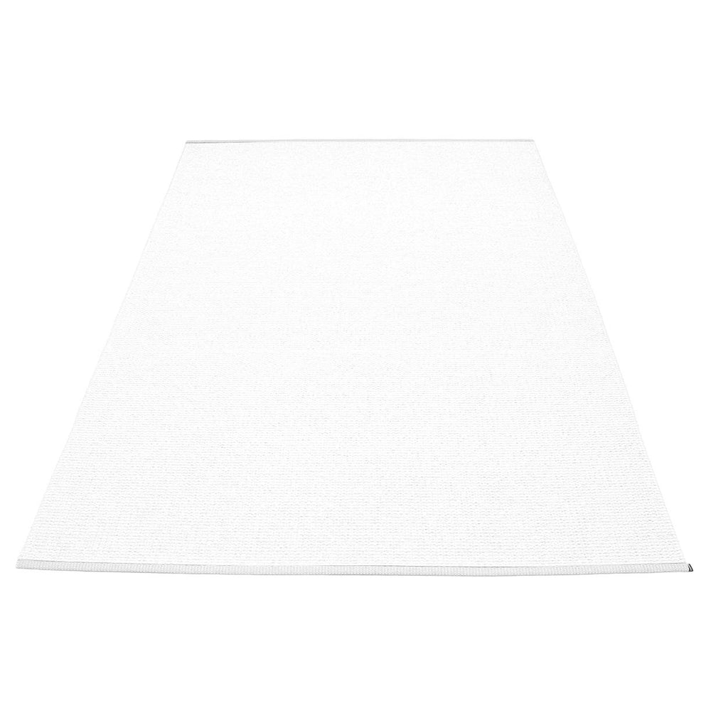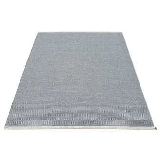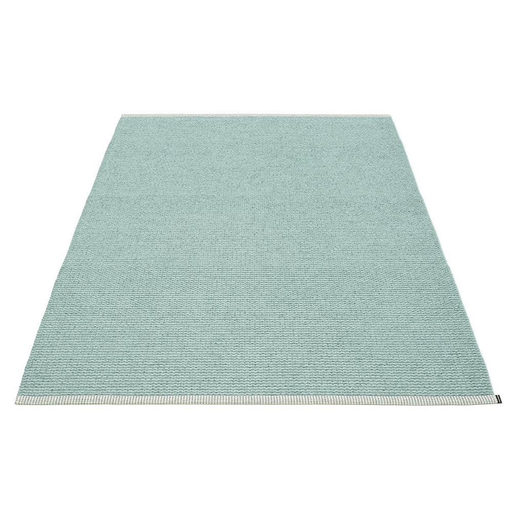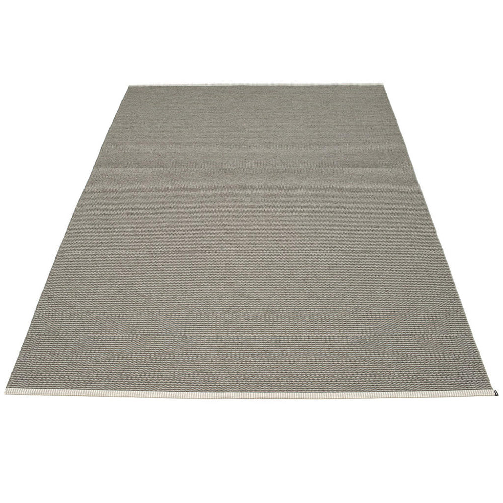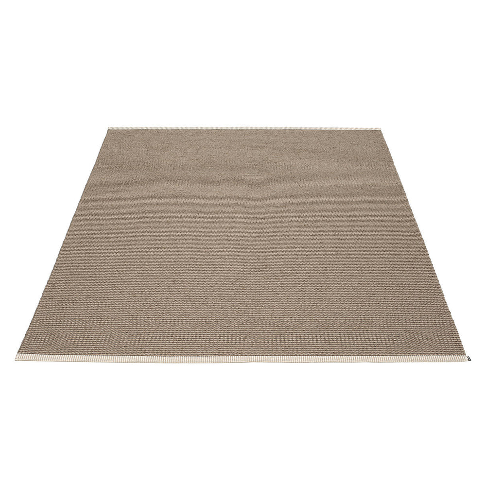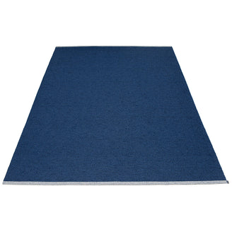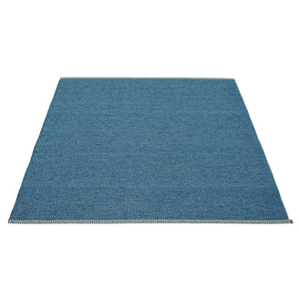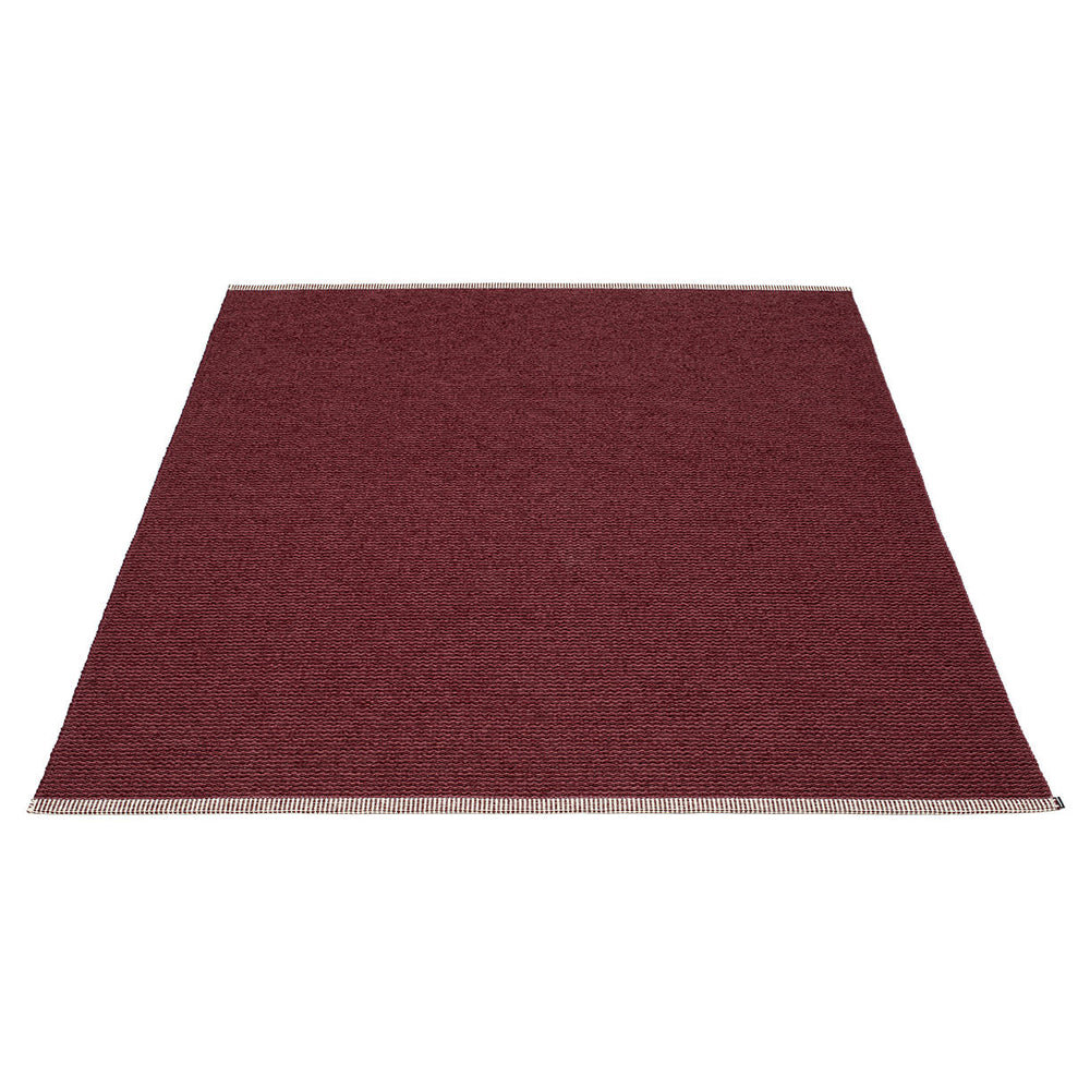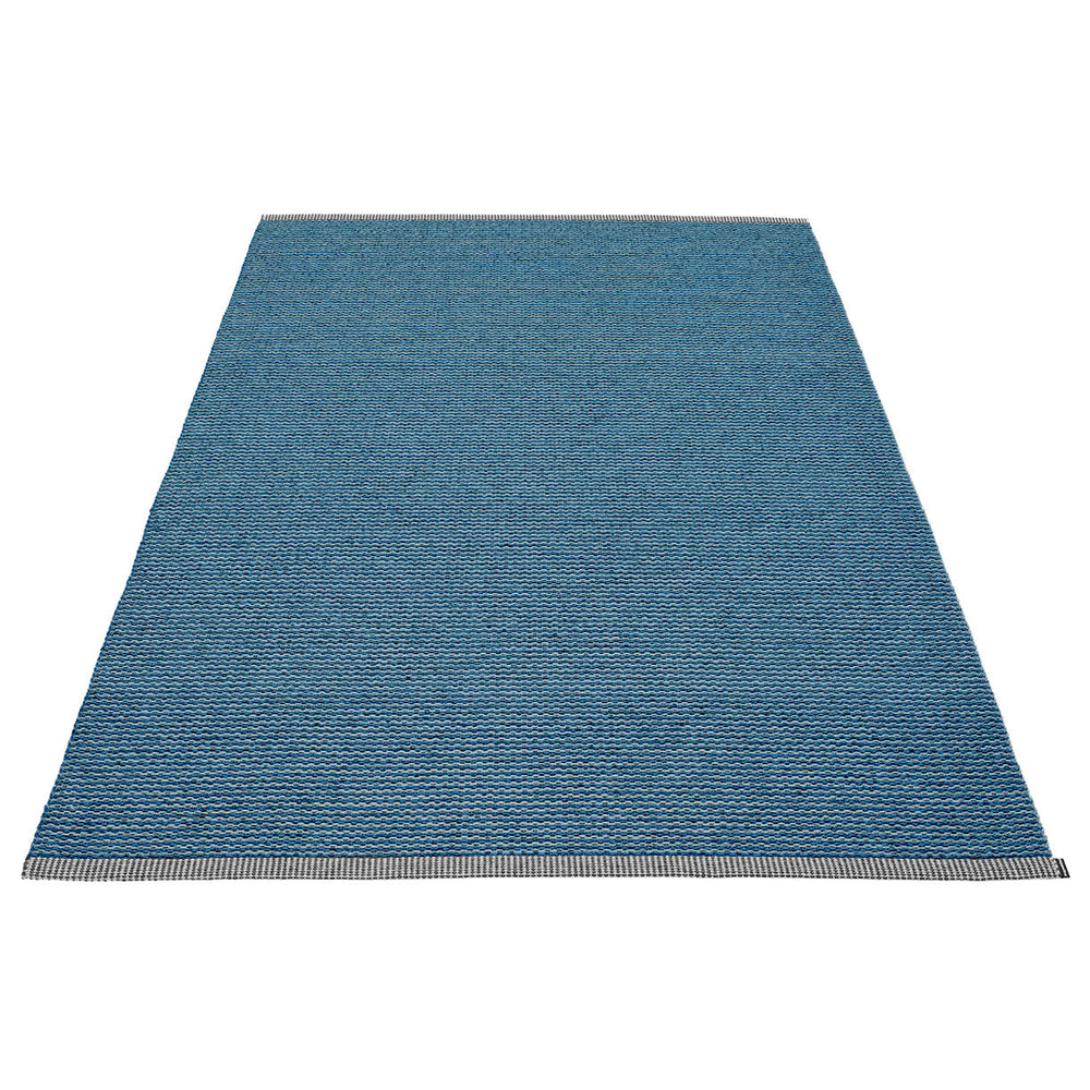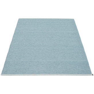 Made in Dalarna, Sweden. Woven on a traditional loom using wooden shuttles. Very practical and easy-to-care-for rug in Swedish manufactured PVC. Welded ribbon for strength and durability, with embossed Pappelina logo, at both edges.