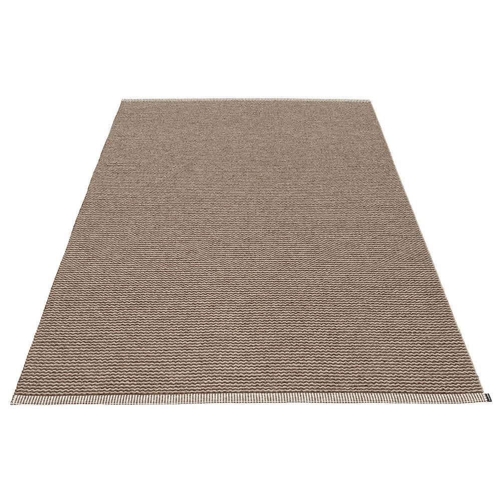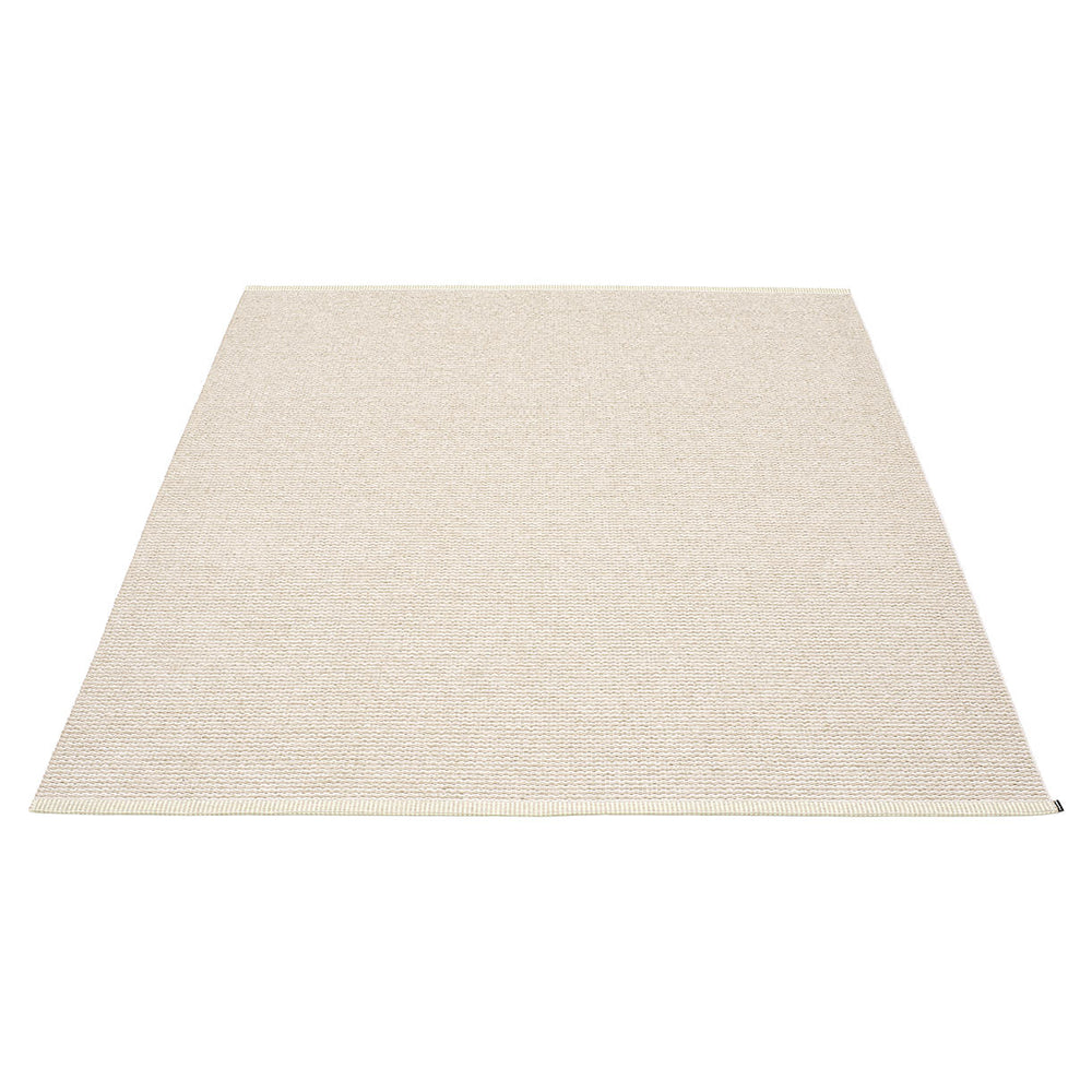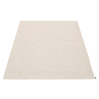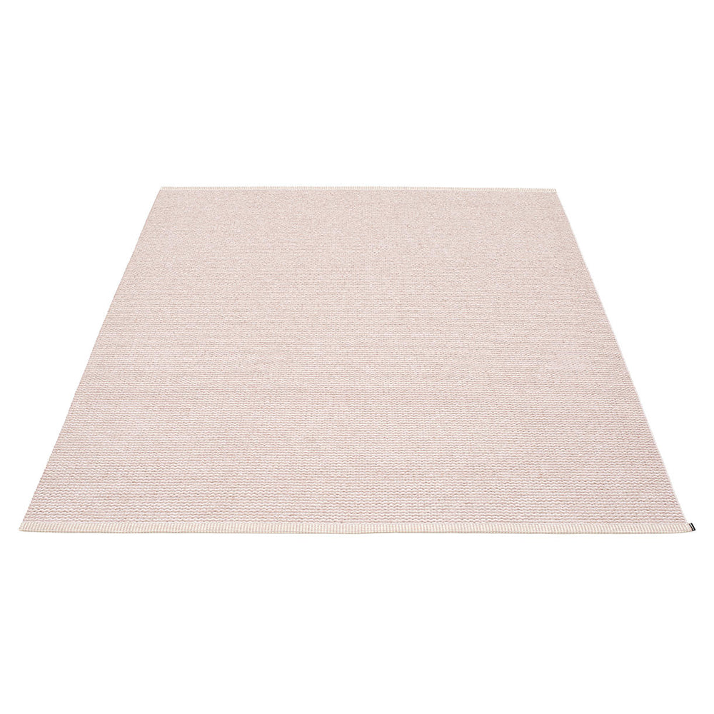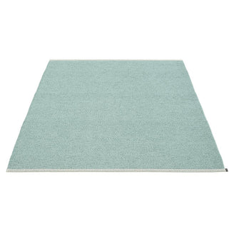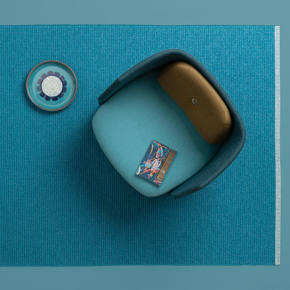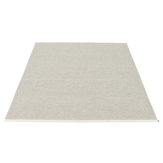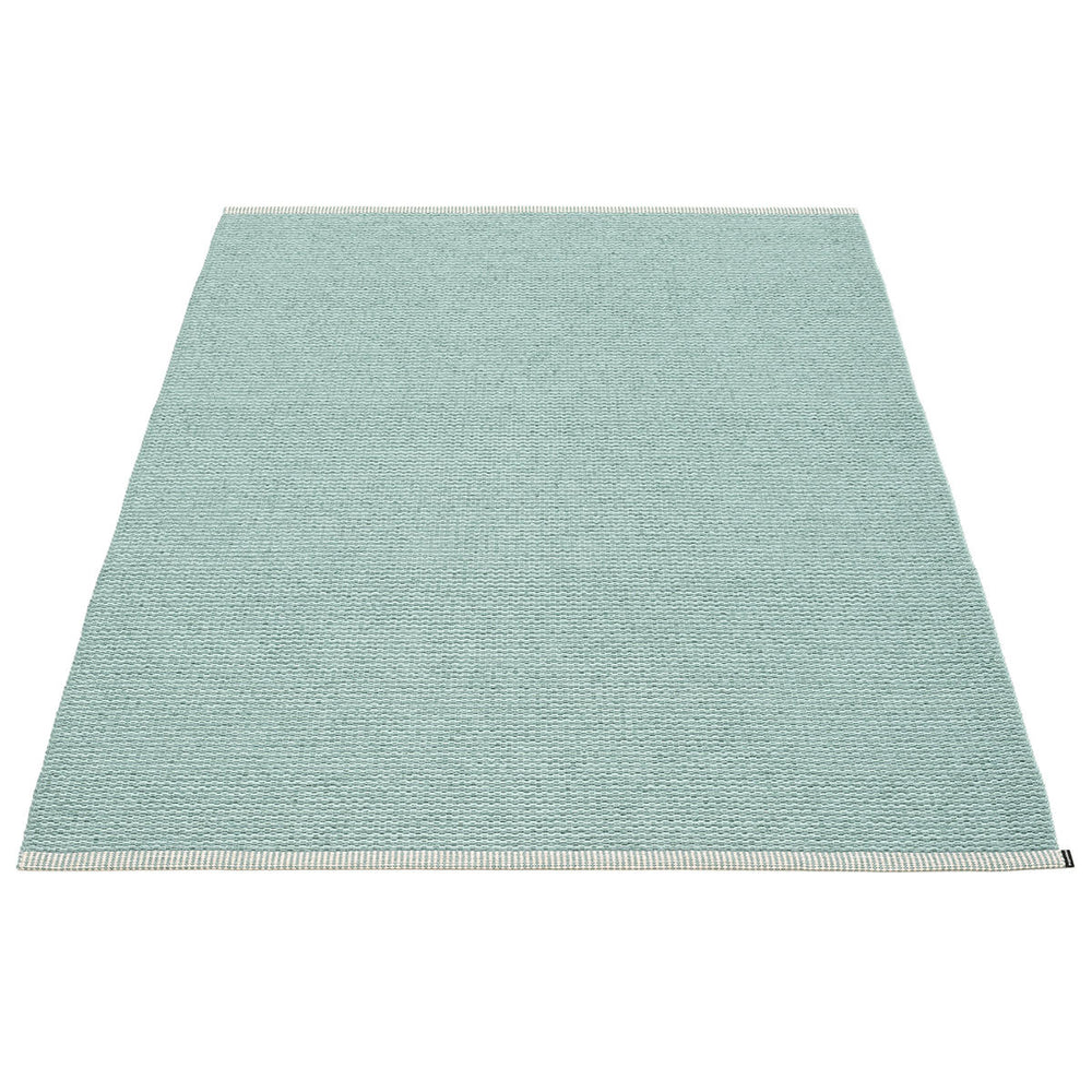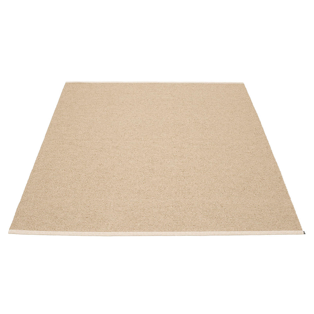 Made in Dalarna, Sweden. Woven on a traditional loom using wooden shuttles. Very practical and easy-to-care-for rug in Swedish manufactured PVC. Welded ribbon for strength and durability, with embossed Pappelina logo, at both edges.