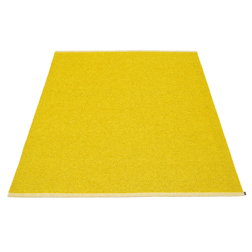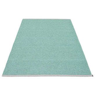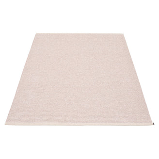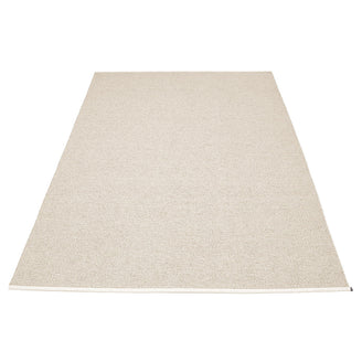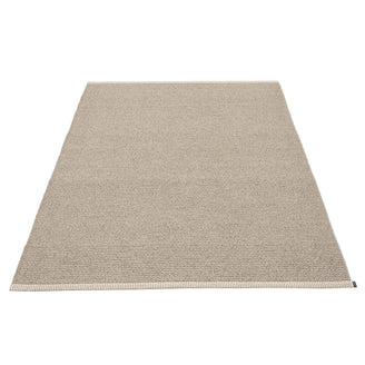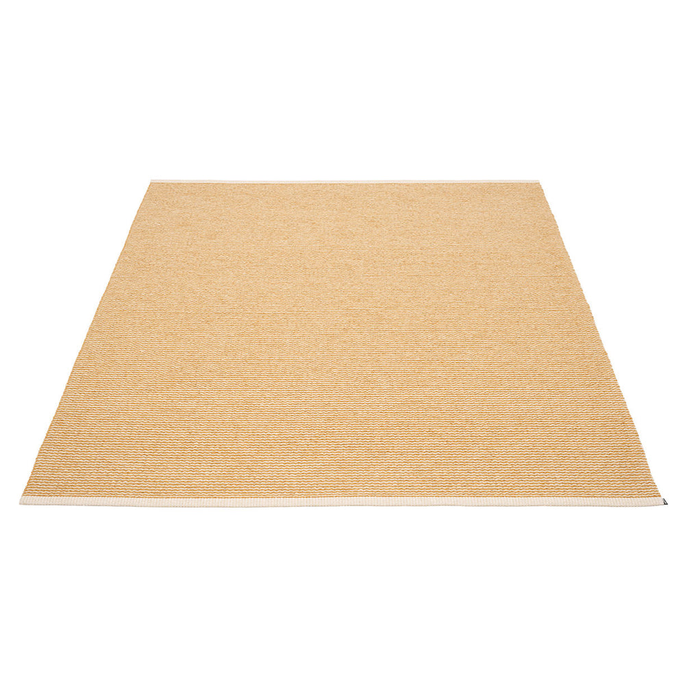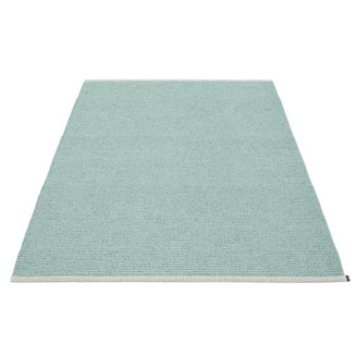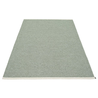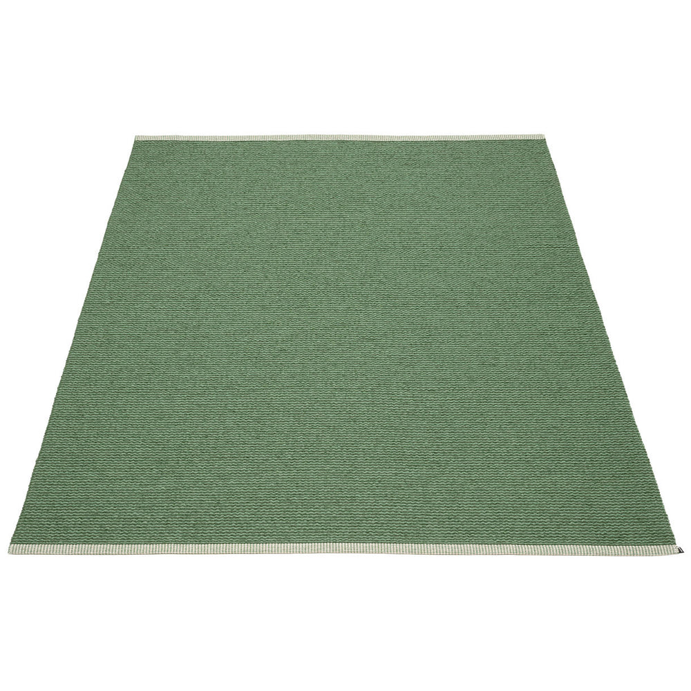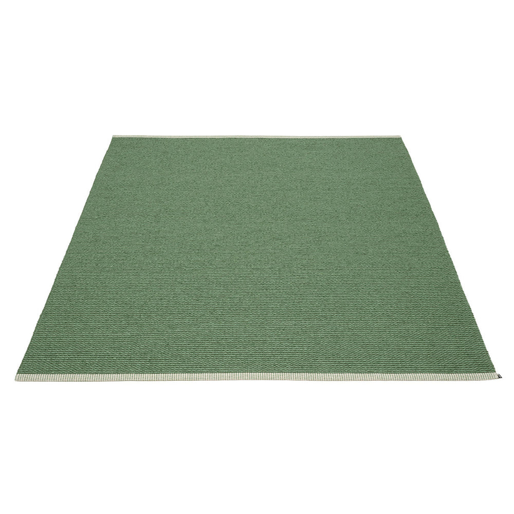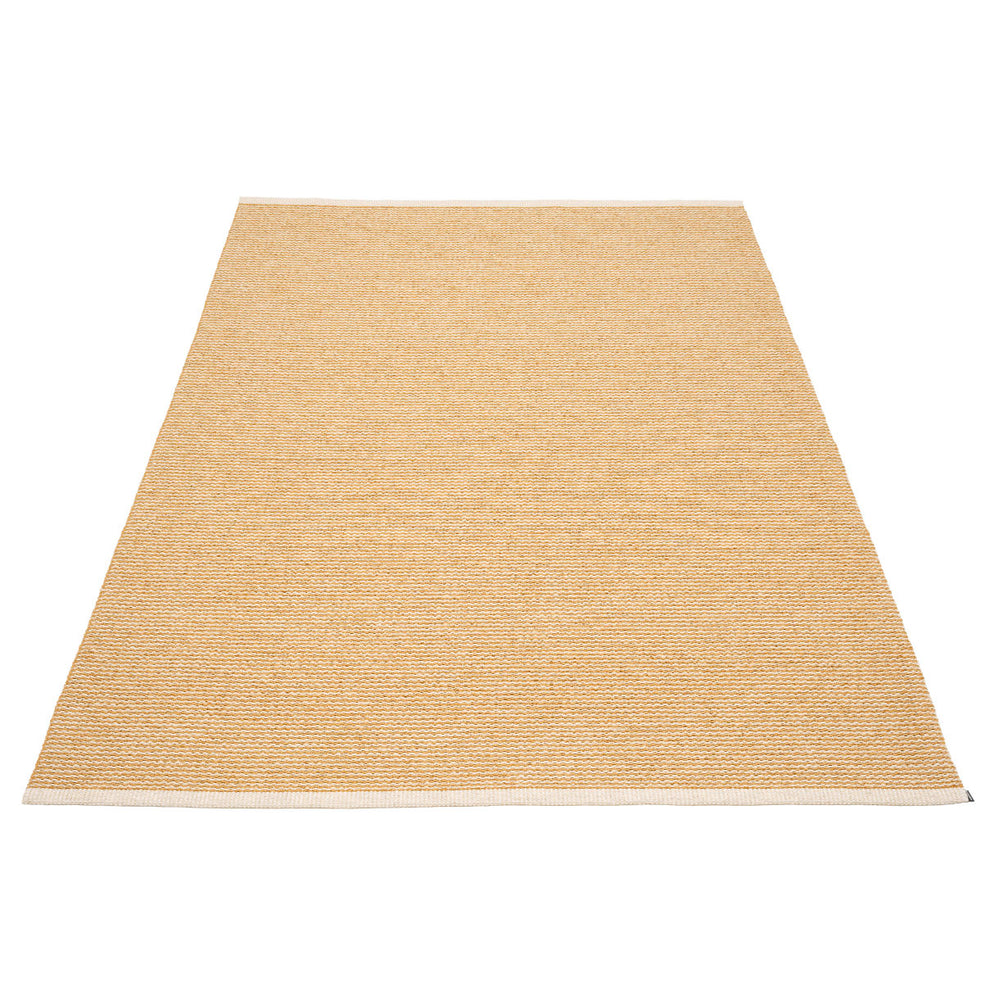 Made in Dalarna, Sweden. Woven on a traditional loom using wooden shuttles. Very practical and easy-to-care-for rug in Swedish manufactured PVC. Welded ribbon for strength and durability, with embossed Pappelina logo, at both edges.