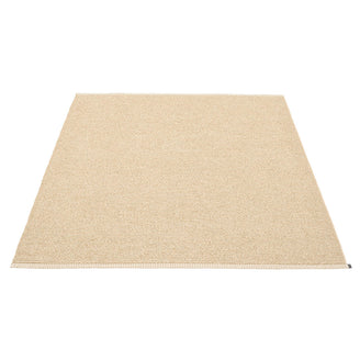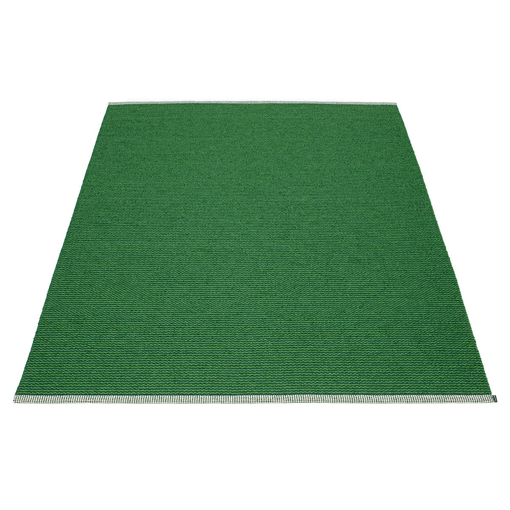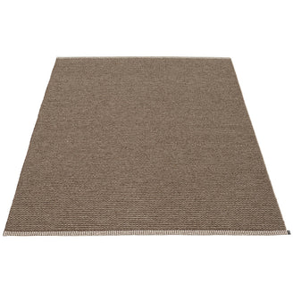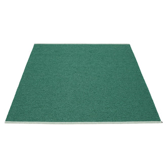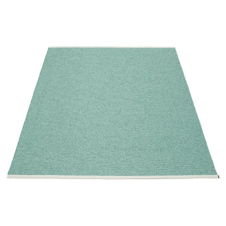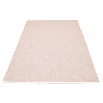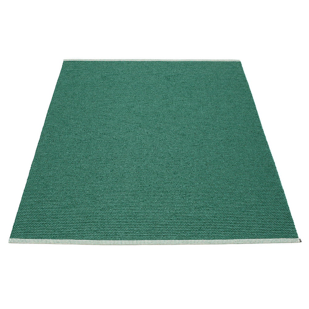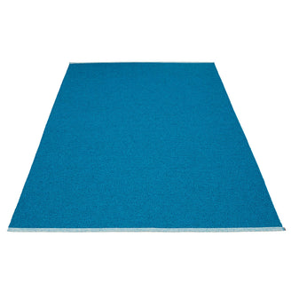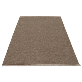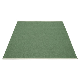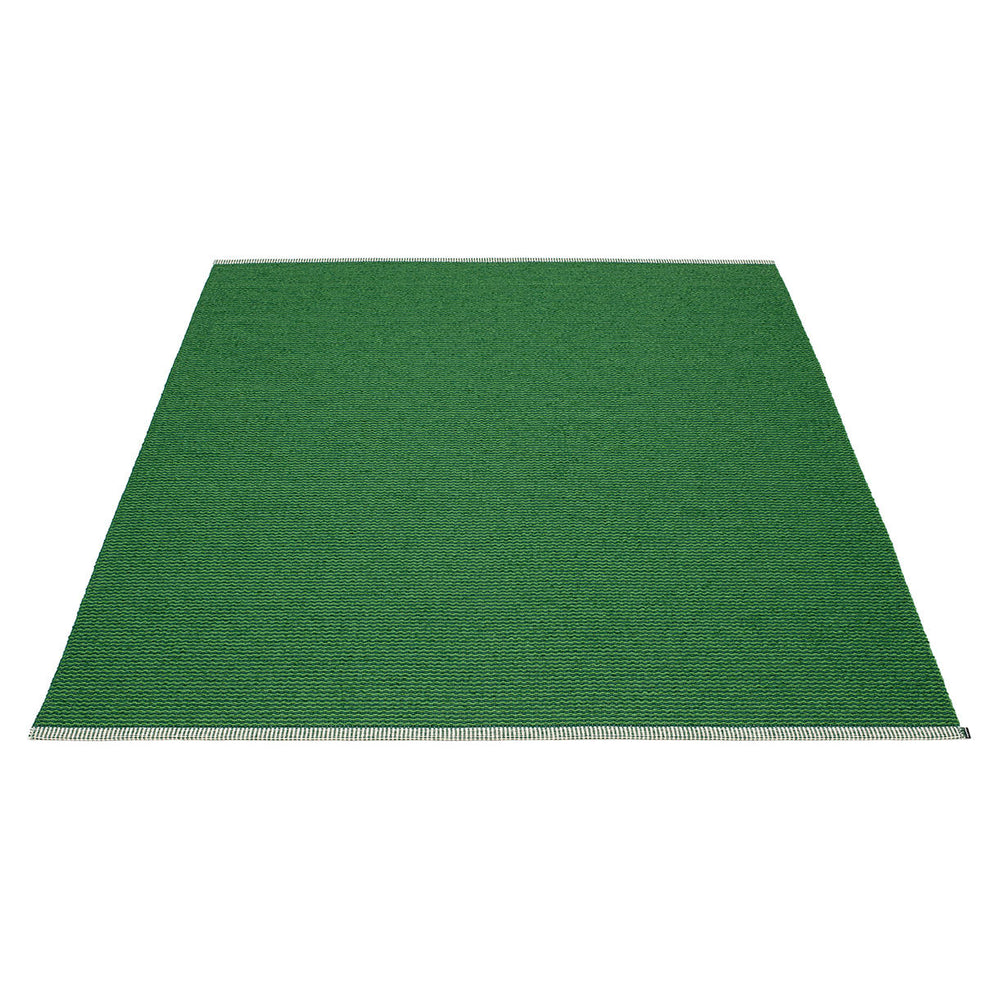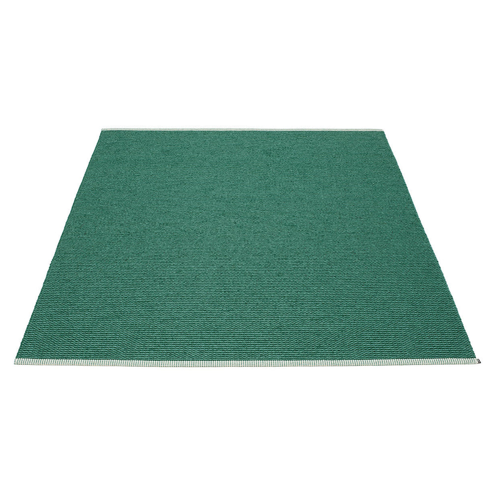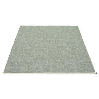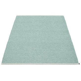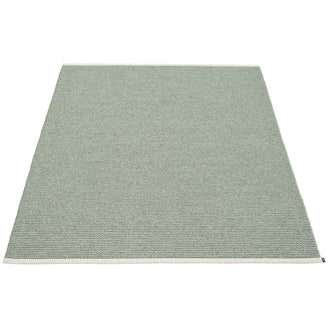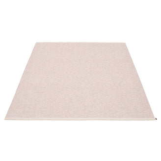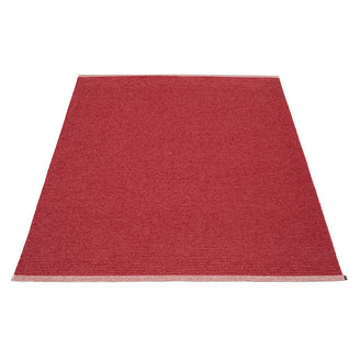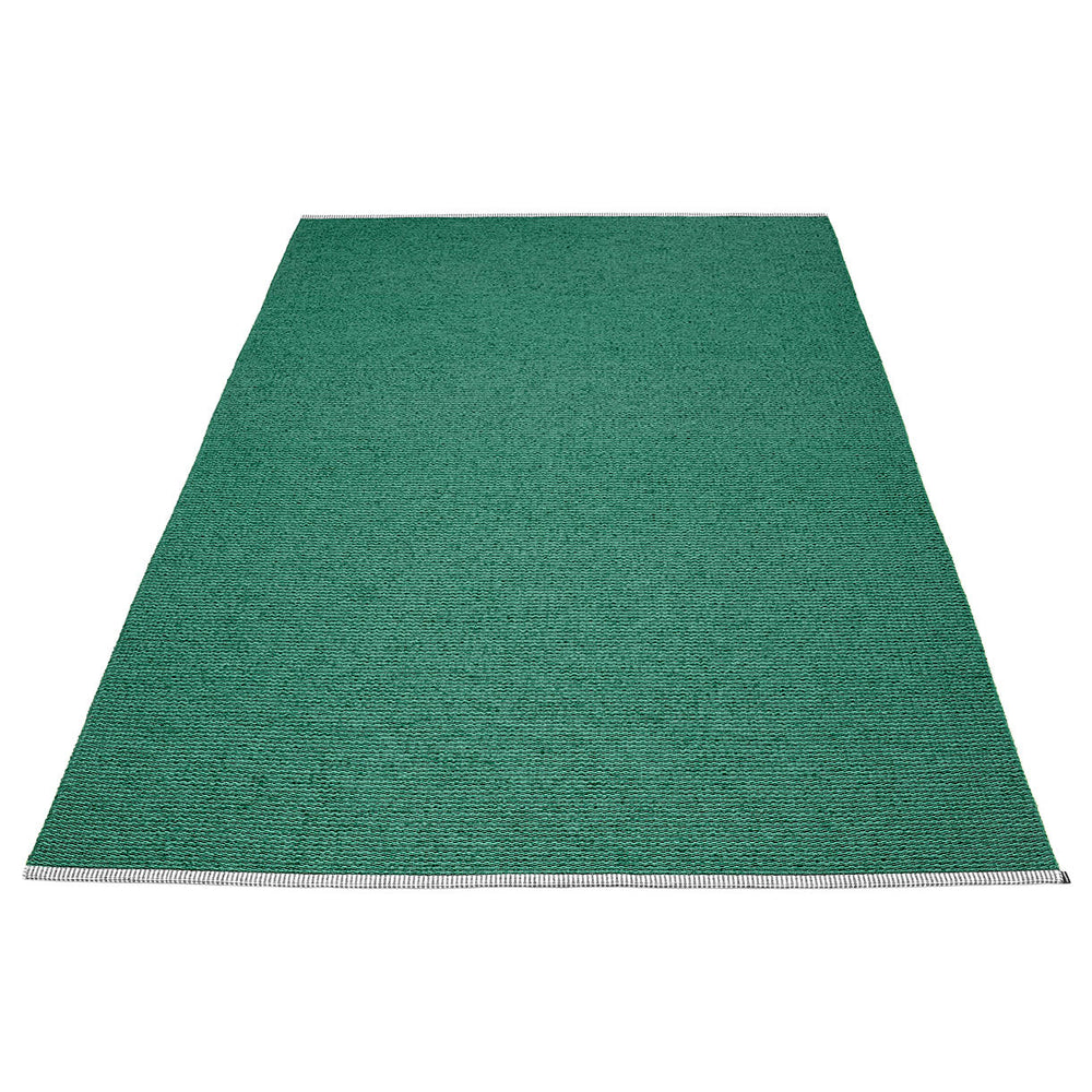 Made in Dalarna, Sweden. Woven on a traditional loom using wooden shuttles. Very practical and easy-to-care-for rug in Swedish manufactured PVC. Welded ribbon for strength and durability, with embossed Pappelina logo, at both edges.