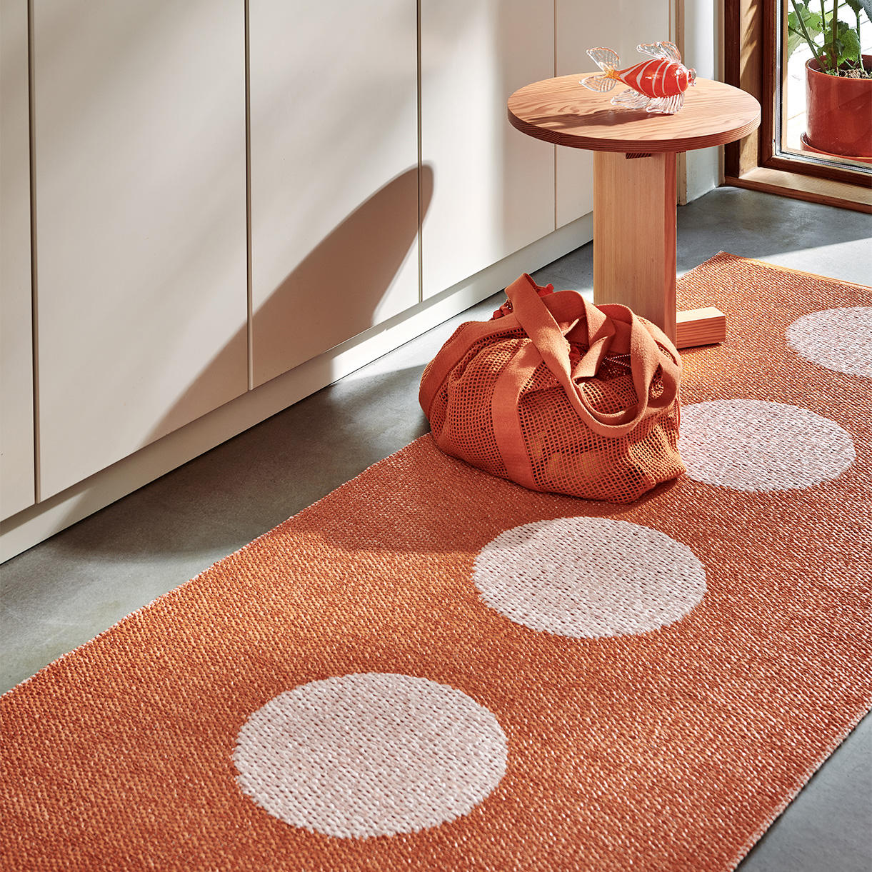 Made from Swedish-manufactured PVC, it’s as practical as it is stylish: easy to clean, hand or cold machine washable (just skip the spin), and finished with welded edges for strength and a subtle embossed Pappelina logo.