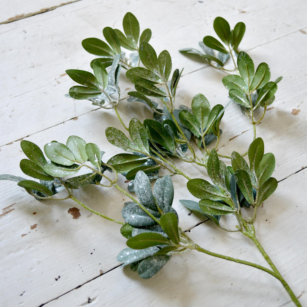 Add a touch of winter greenery with this Icy Olive Leaf Spray.