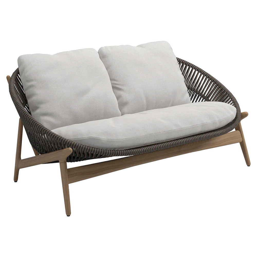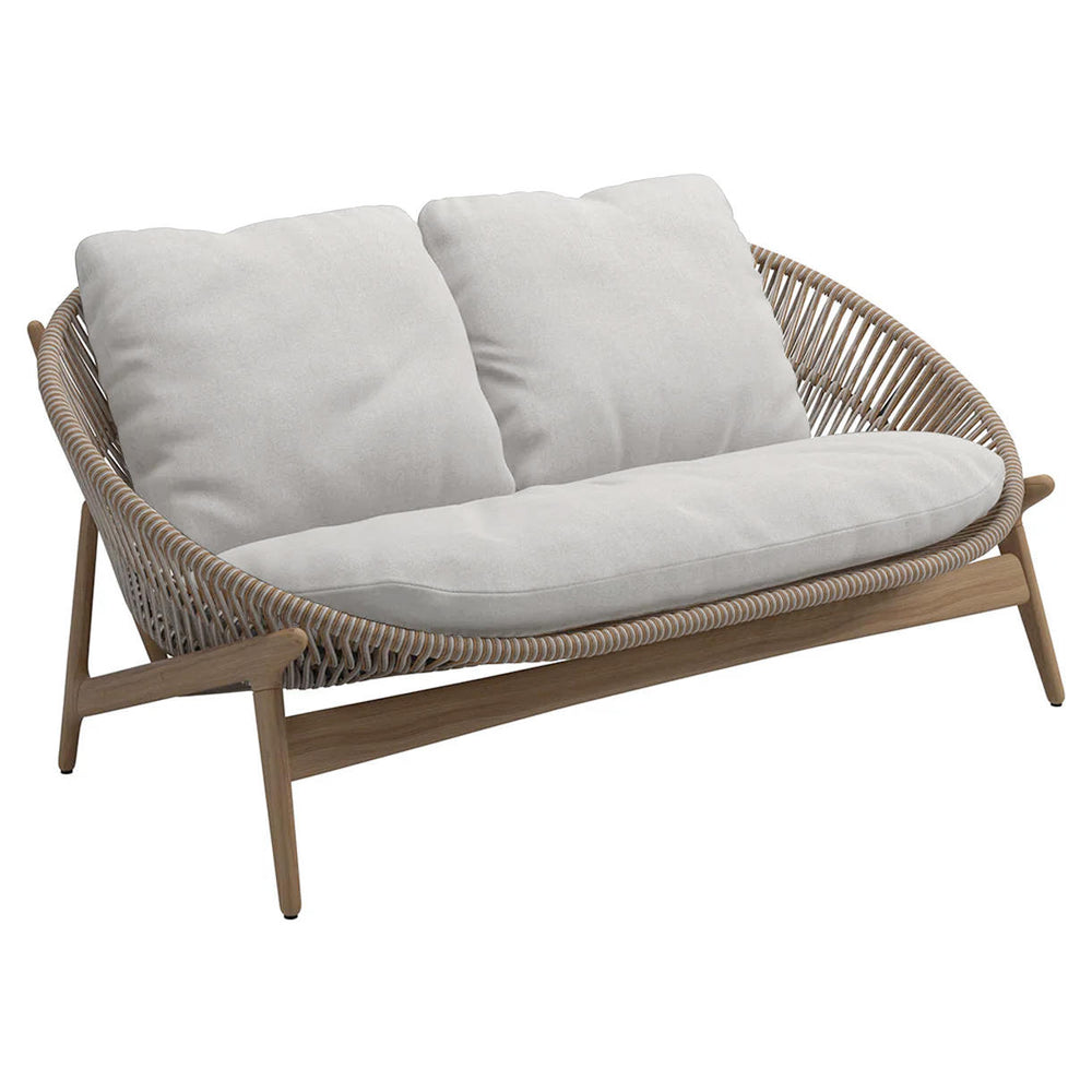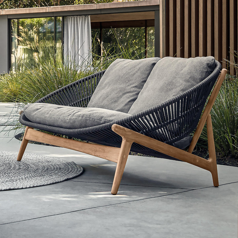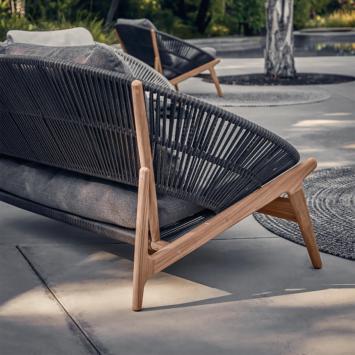 The Bora deep seating sofa by Gloster is a combination of the tactile and the ethereal, this teak and weave furniture combines the fine craftsmanship of an expertly crafted teak frame extended to a soft and inviting seating comfort.