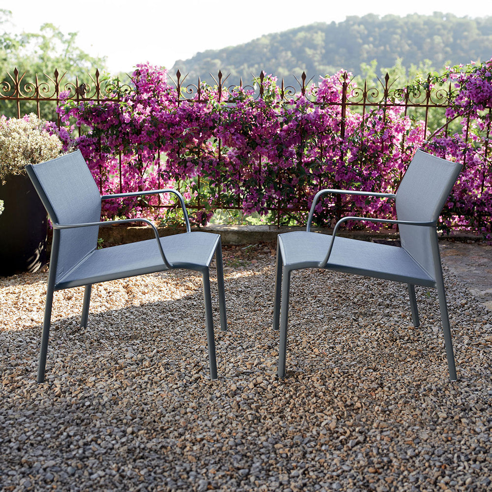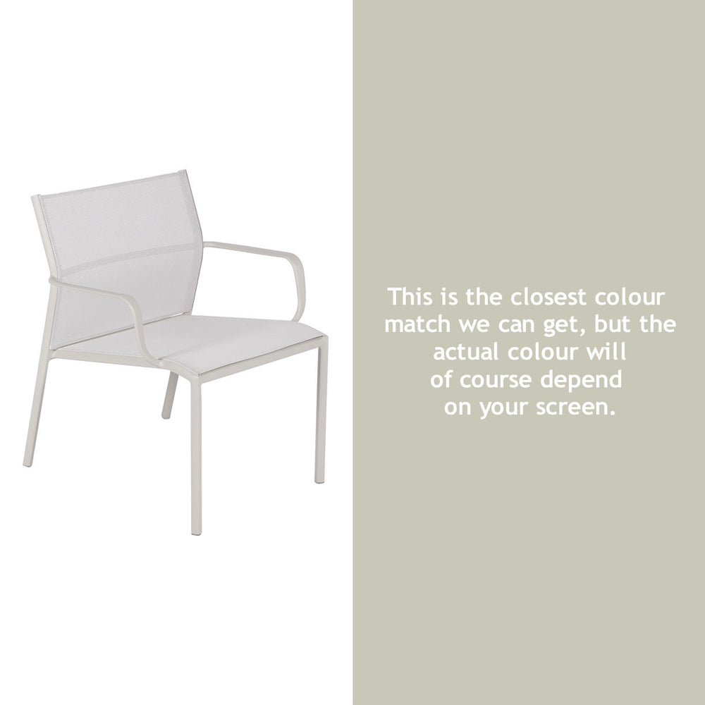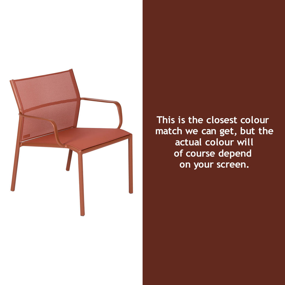 Cadiz Low Armchairs are available in the 8 colours shown here. Fermob Stereo fabric is an updated weave design that has a lighter tonal thread running through it.