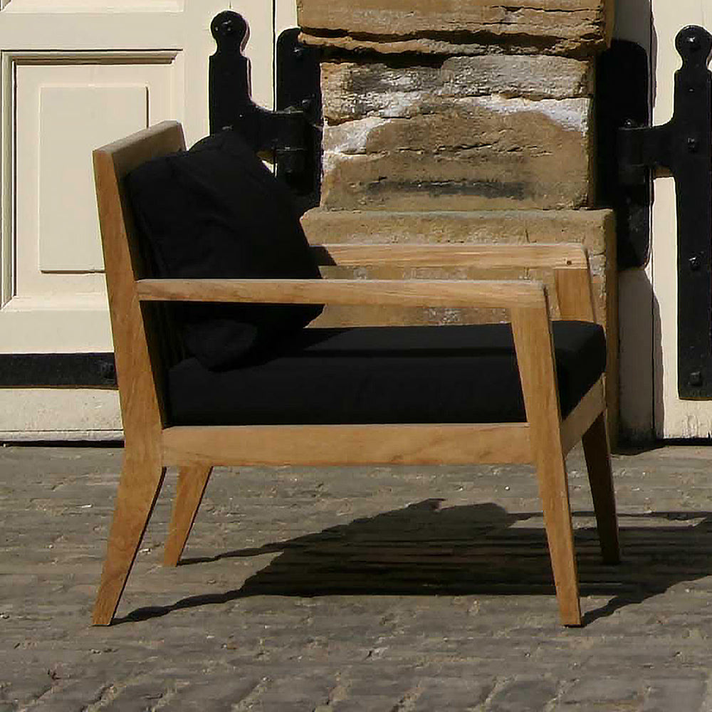 The beautiful deep, plantation teak sofas and chairs have optional upholstery that make them irresistibly comfortable.