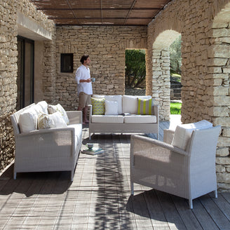 The Safi collection is based on pure craftsmanship, the handwoven Lloyd Loom style furniture gives your terrace a extra comfort and will adapt easily to any outdoor space.