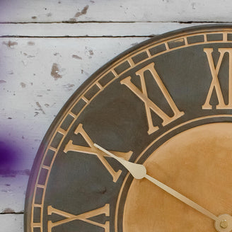 This outdoor wall clock made in a sturdy resin takes its influence from Italian renaissance style. With warm ombre hues and classic Roman numerals the clock has an elegant simplicity.