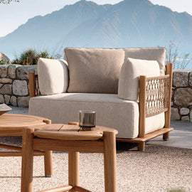 Designed for both style and comfort, the lounge chair has plush outdoor seat, back and arm cushions, so perfect for relaxing in the garden, on the terrace, or wherever the sun takes you.