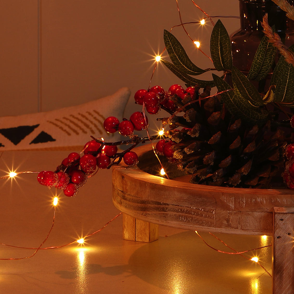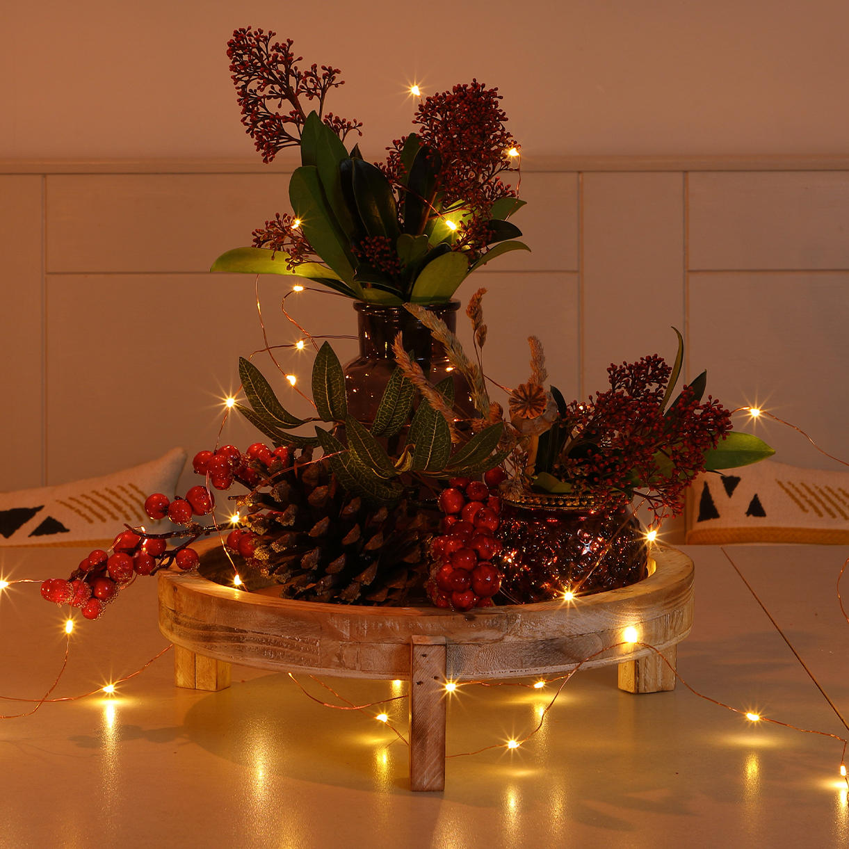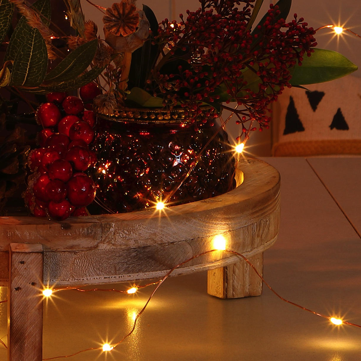 Simple, discreet but very twinkly copper bare wire lights are just gorgeous wrapped around garlands or banisters. read more
