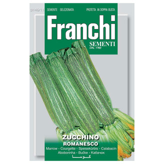 The Courgette Romanesco produce small to mid sized lightly ridged zucchino. The plant is a heritage variety from Rome - hence Romanesco . They are easy to grow and produce an abundance of plants.