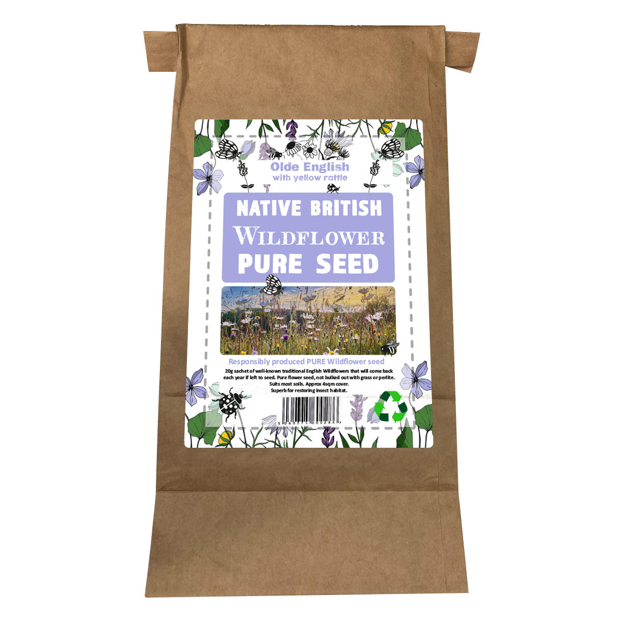 Bring a little bit of traditional British countryside to your garden with these pure British wildflower seeds! Perfect for restoring grasslands and attracting bees and butterflies, which are sadly under threat. These native British seeds are all about helping nature thrive. Each packet contains 20g of seeds which is enough to cover around 4 square metres.