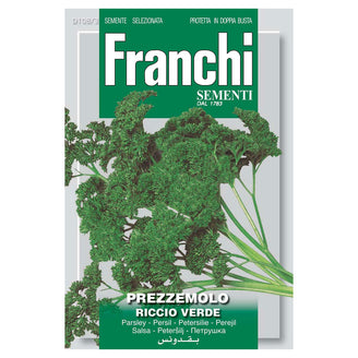 Parsley Riccio herb is a mid-early variety that produces bushy and compact plants with heavily fluffled and serrated dark green, aromatic leaves.