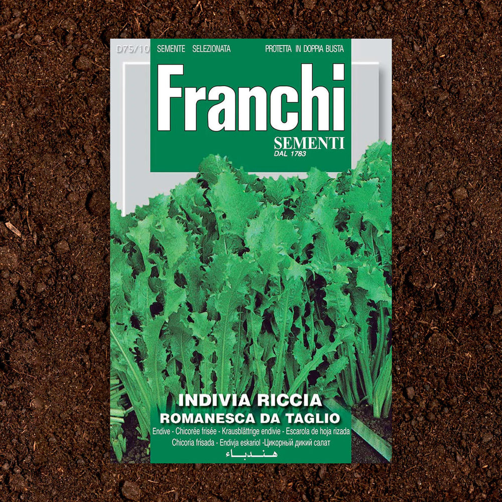 Thin serrated dark green leaves with classic endive taste and texture. Space at 4" between plants, 8" between rows. 40-45 days.