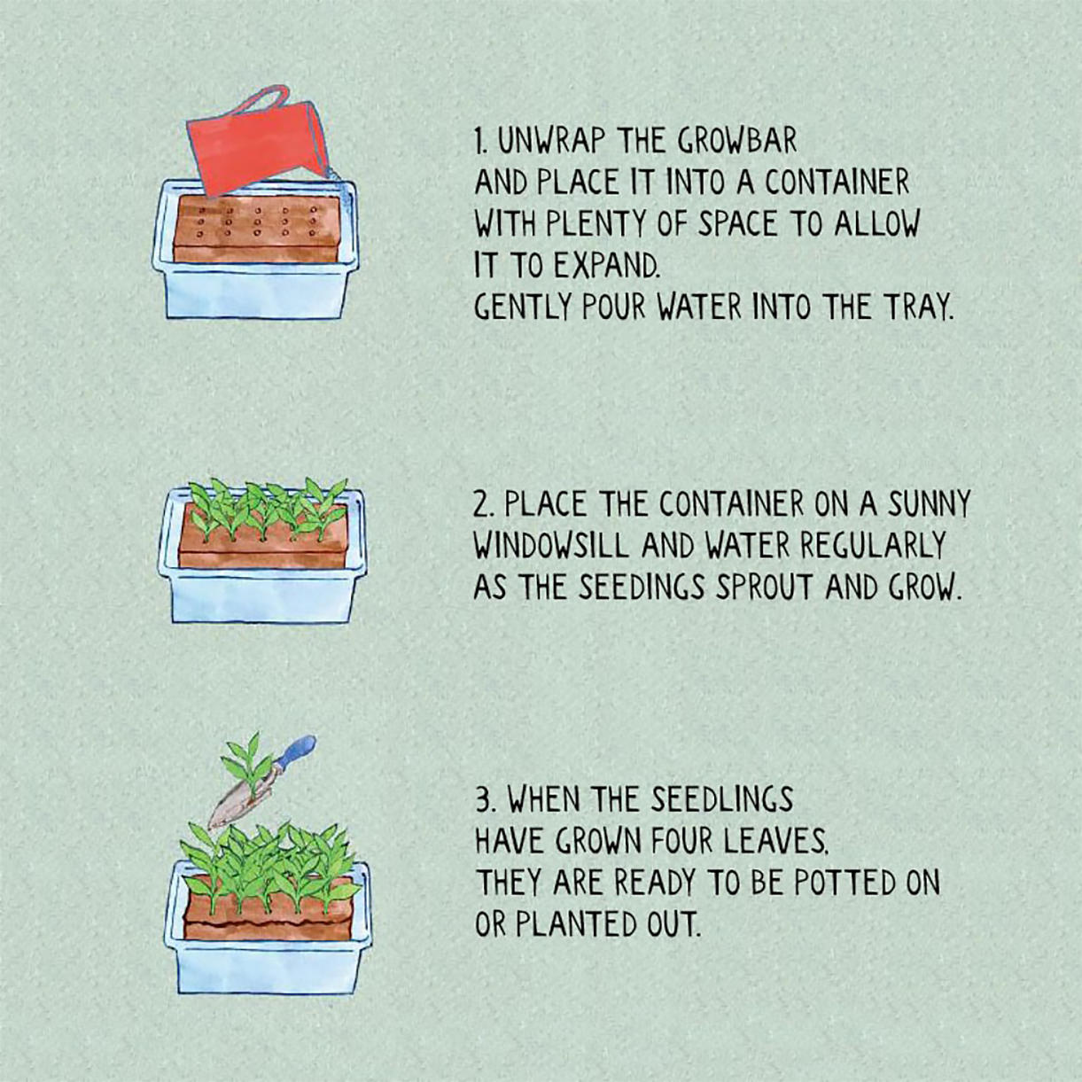 Simply place the Bee Bar in the coconut fibre in a container and water. Place on a sunny window sill to germinate. when the seedings have grown 4 leaves, pot on or plant out.