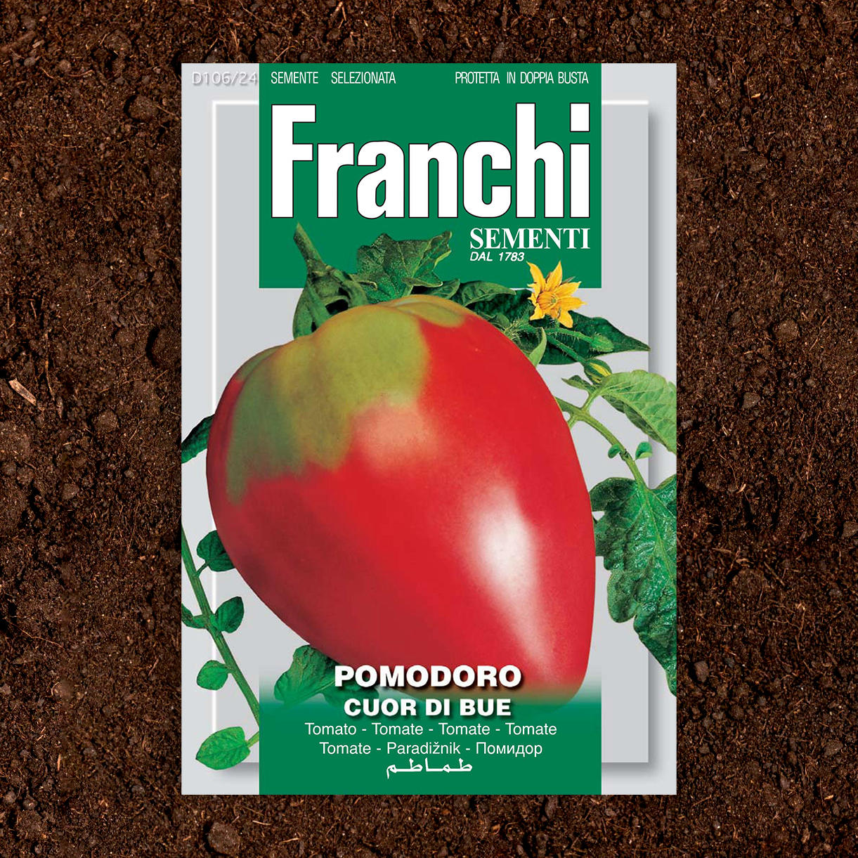 The classic large meaty tomato is ideal for slicing and using in tomato salads or mozzarella. Recommended by chefs for its excellent flavour, meaty texture with few seeds. It takes it name Cuor di Bue or its French name, Coeur de Boeuf (Ox Heart), due to the shape of the fruit.