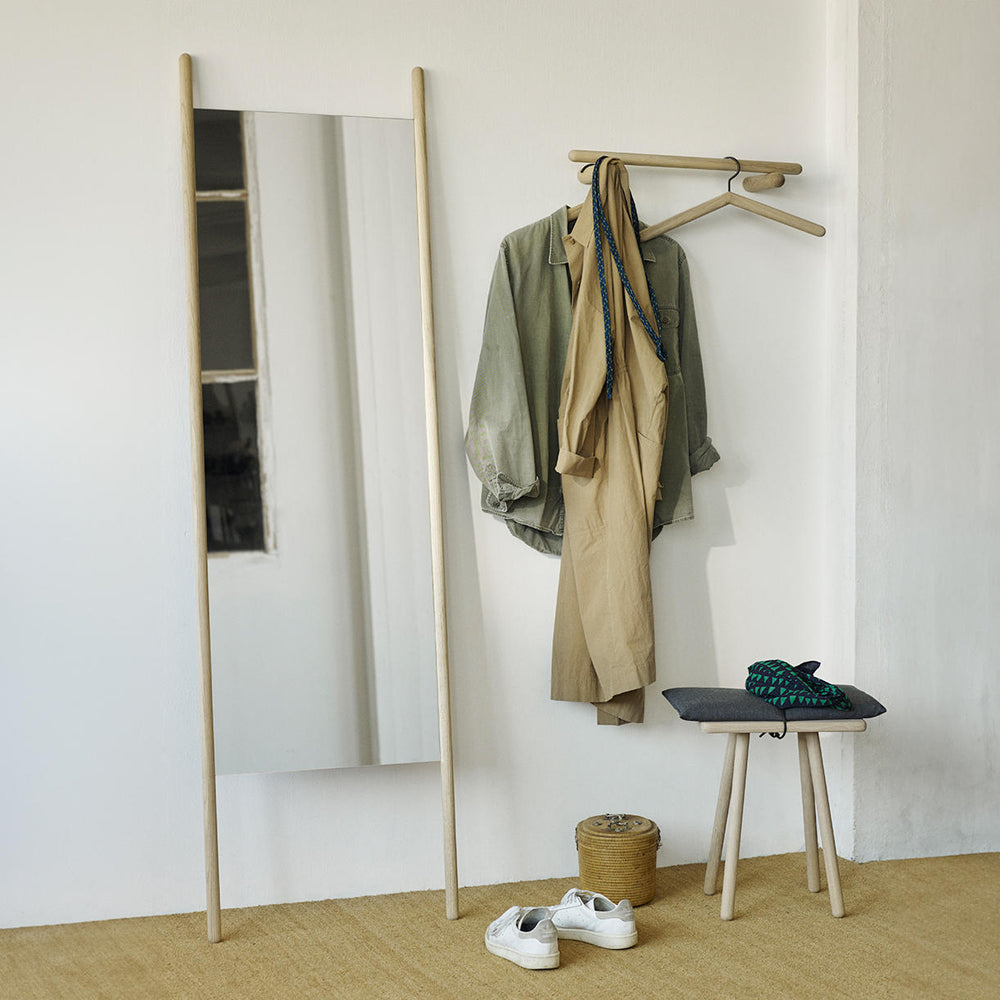 The Georg mirror gently leans against the wall, opening up any outside-in space.