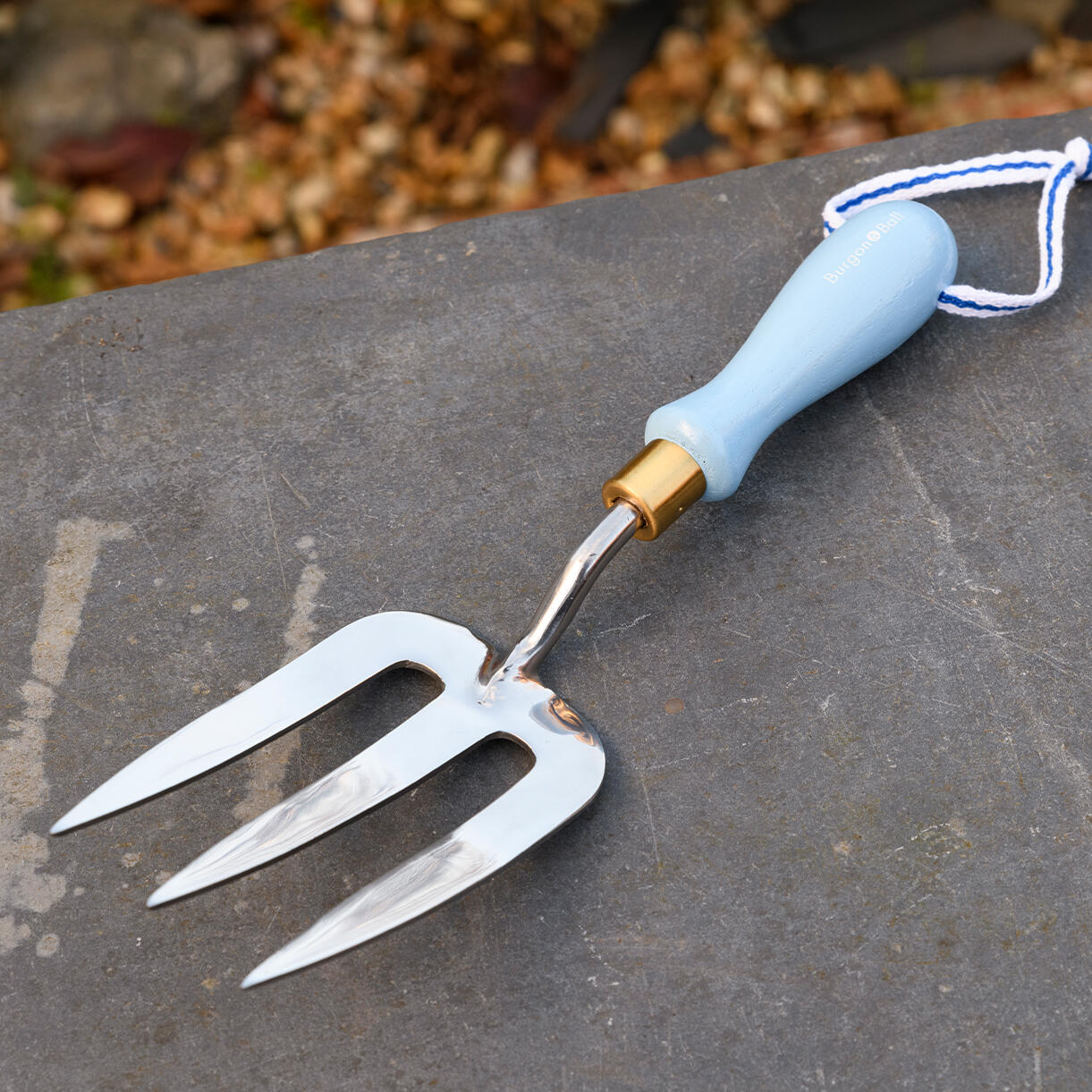 Add a pop of personality to your gardening with this retro-styled hand fork. The vintage powder blue handle, paired with a gleaming brass ferrule, makes it sturdy with plenty of style.