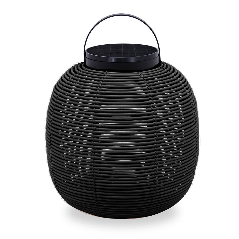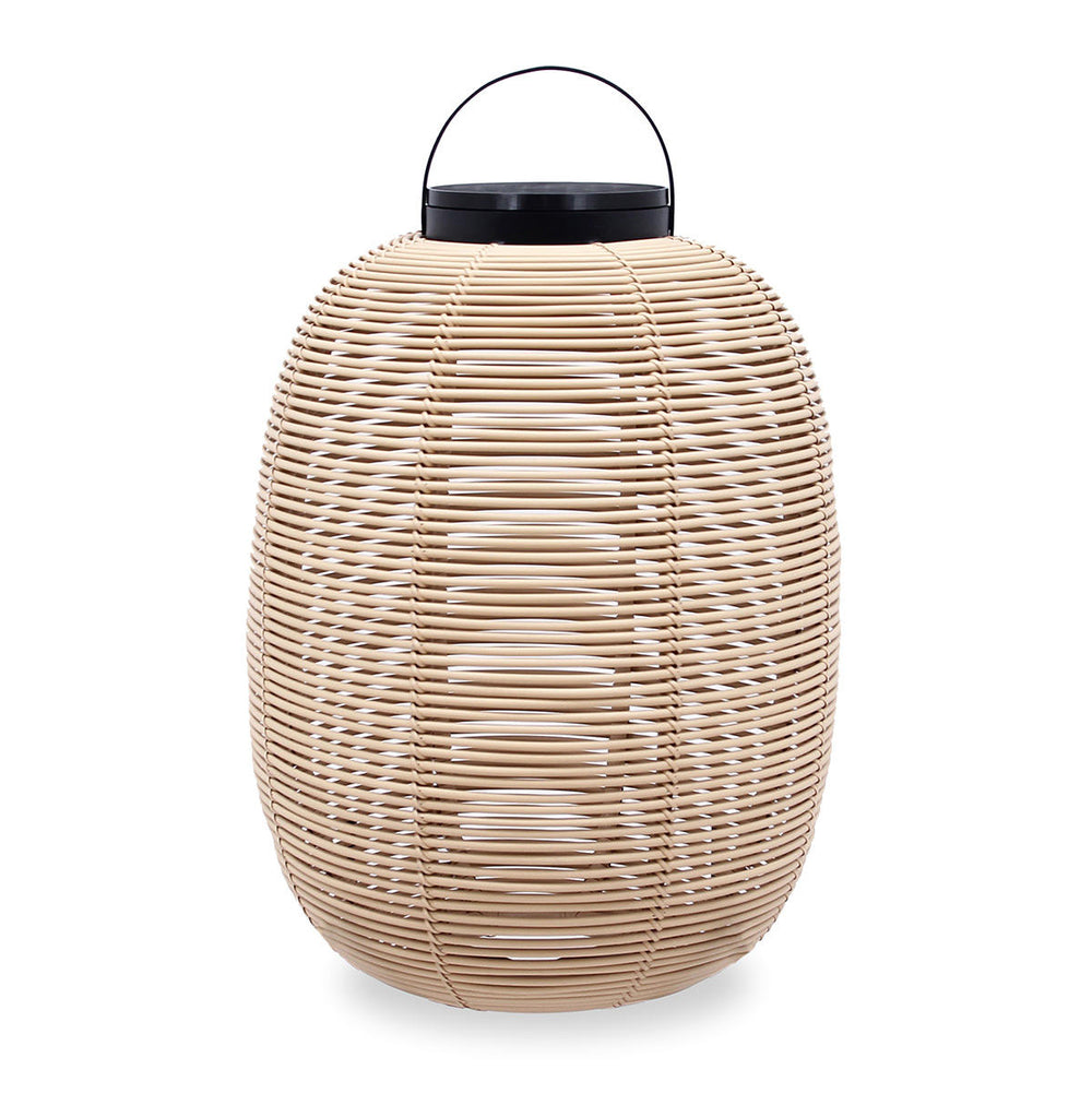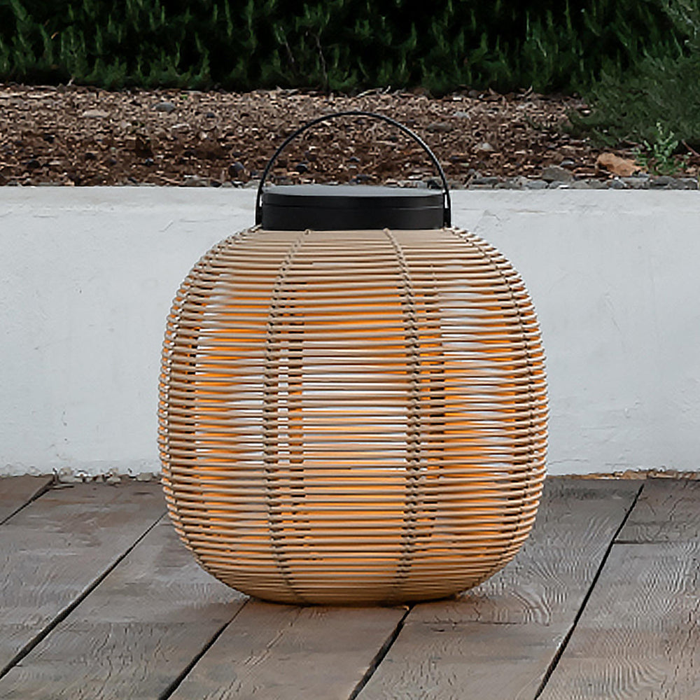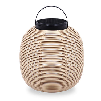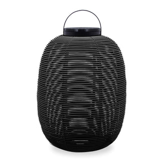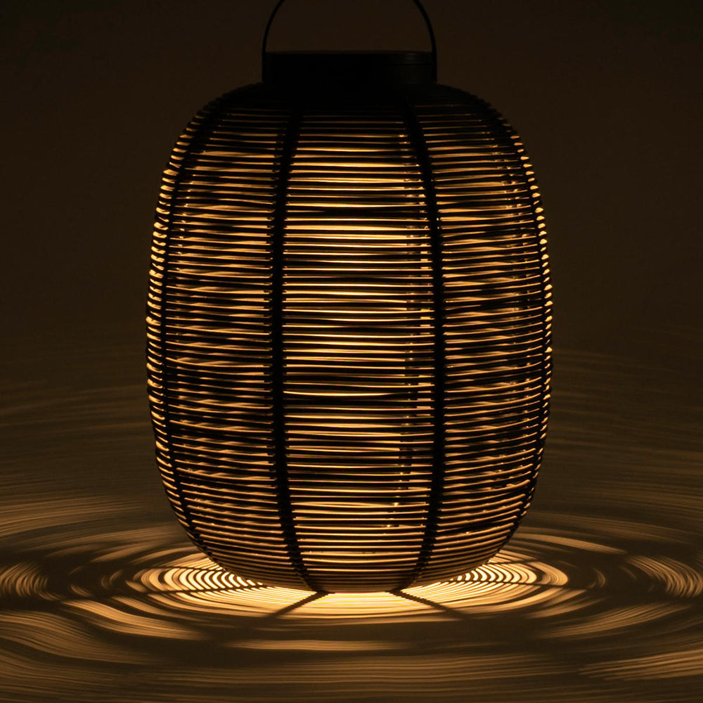 Made with the outdoor shell in synthetic rattan, the handwoven lantern creates a stunning shadow play.