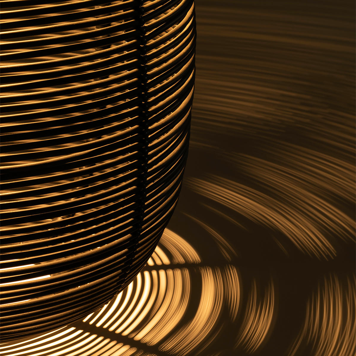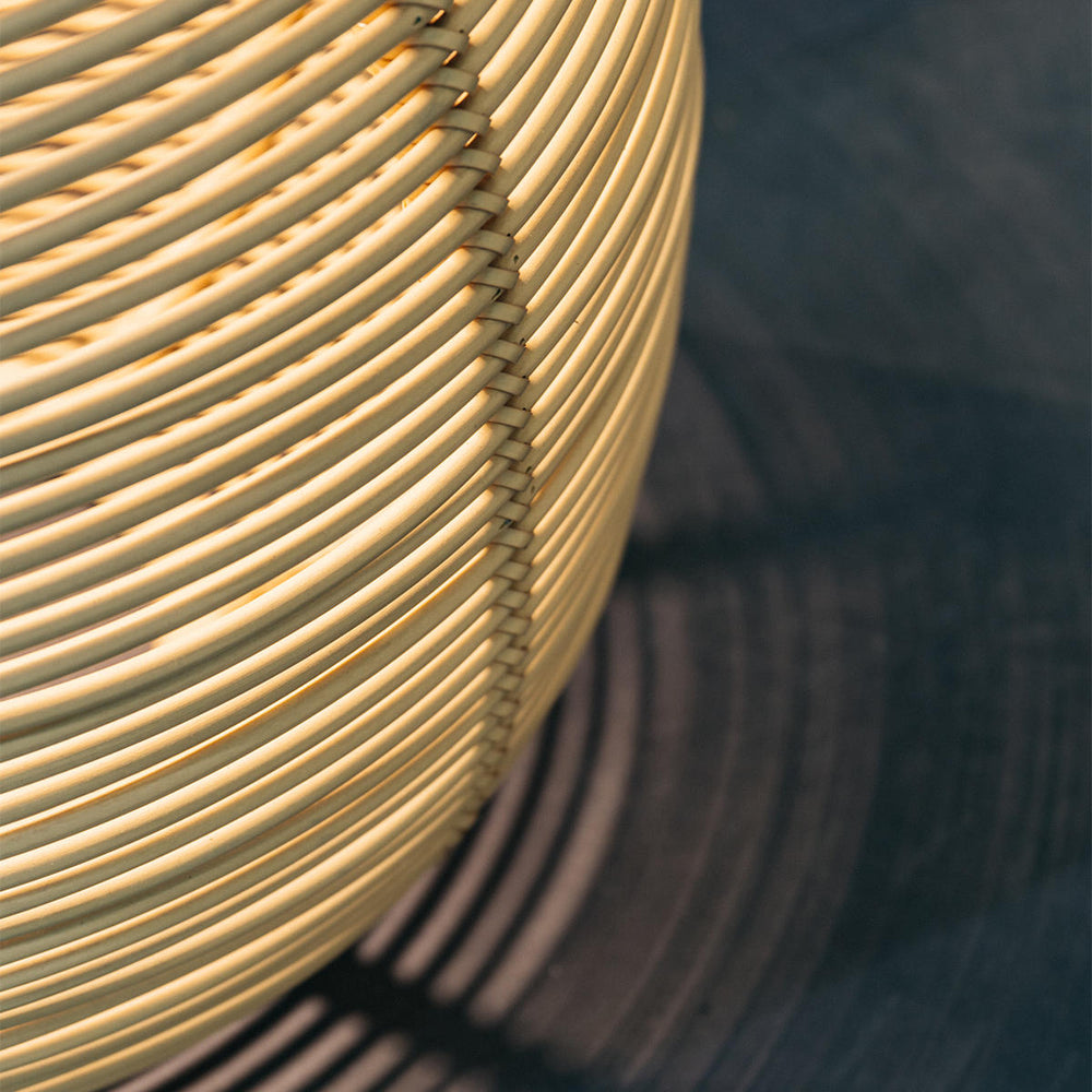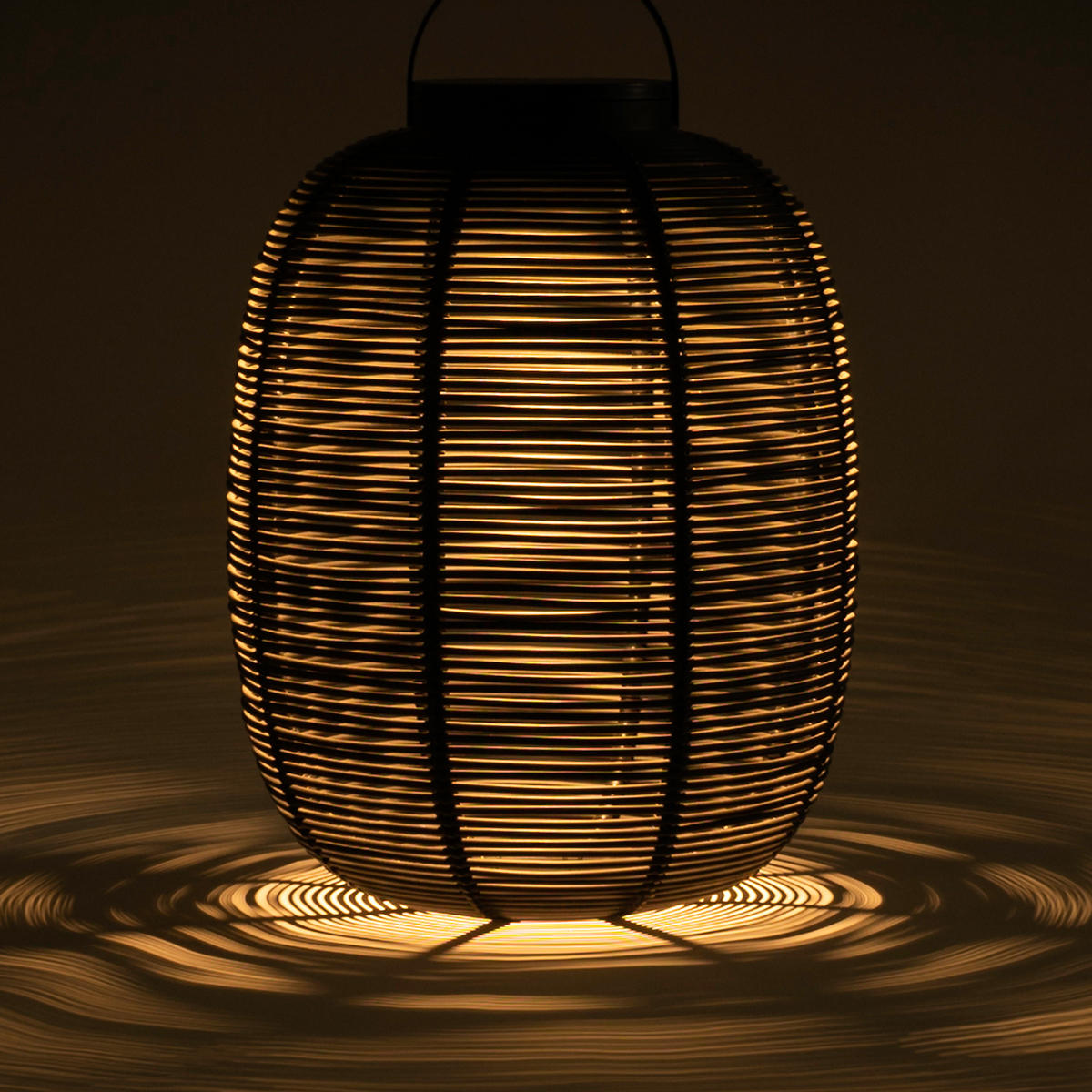 Made with the outdoor shell in synthetic rattan, the handwoven lantern creates a stunning shadow play.