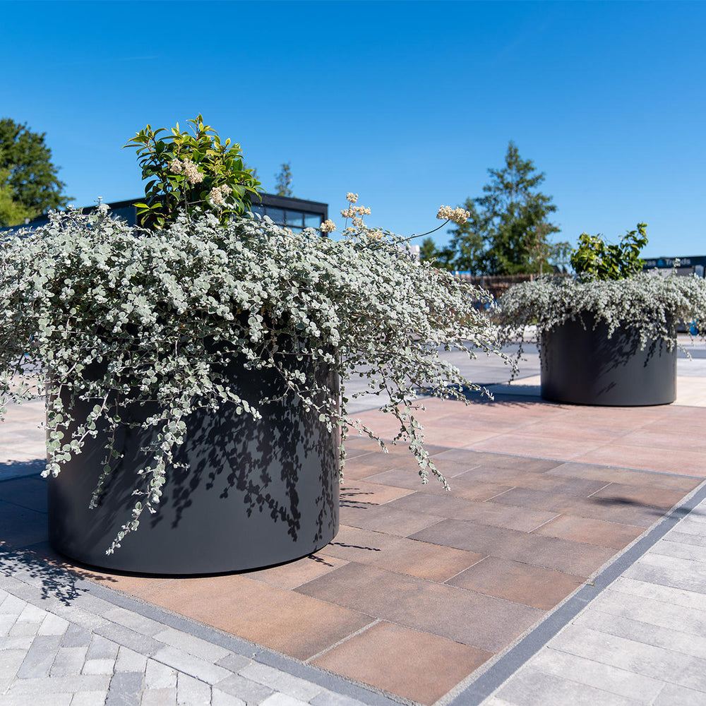 Give plants style and stature with these elegant, cylindrical urban aluminium planters.