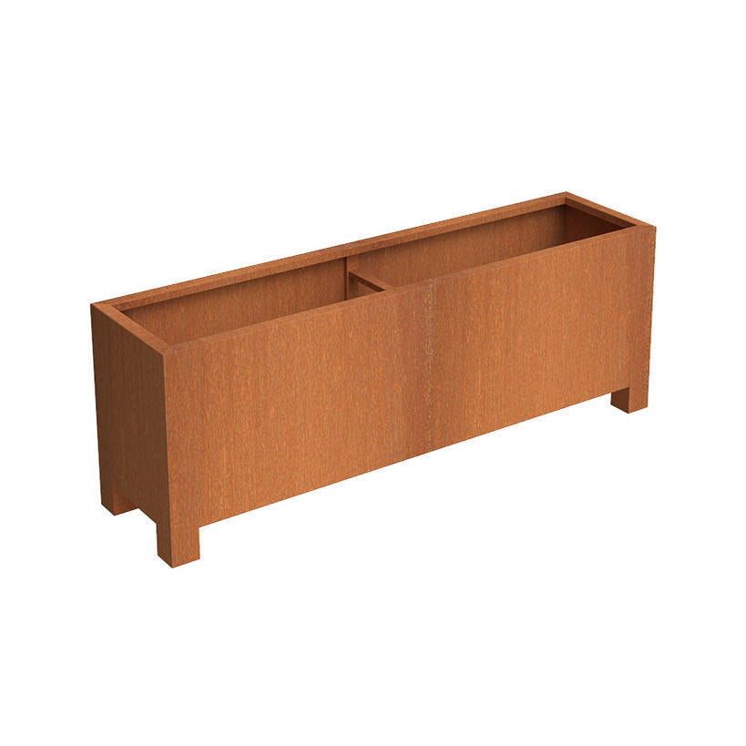 These elegant planters with 9cm tall feet, are manufactured in Corten steel, highly weather resistant and delightful when combined with green foliage planting in the garden.