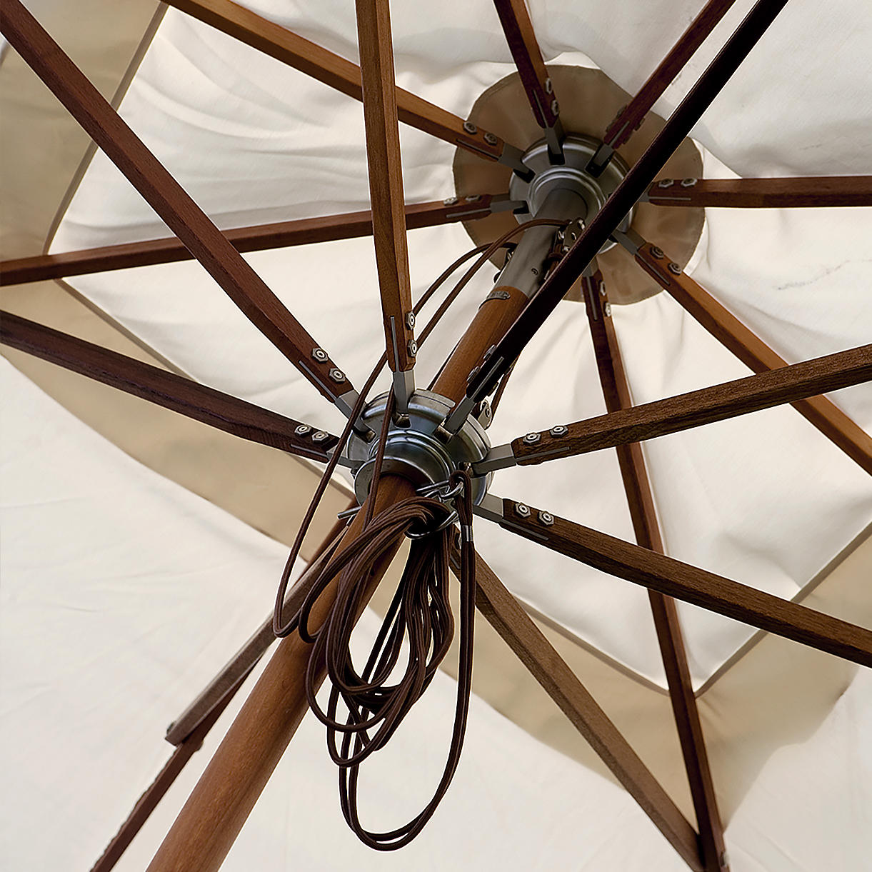With regard to caring for your parasol, we would recommend leaving the umbrella open to dry in the summer. This prevents fold marks that can occur if the umbrellas are left closed in the garden without a cover on.