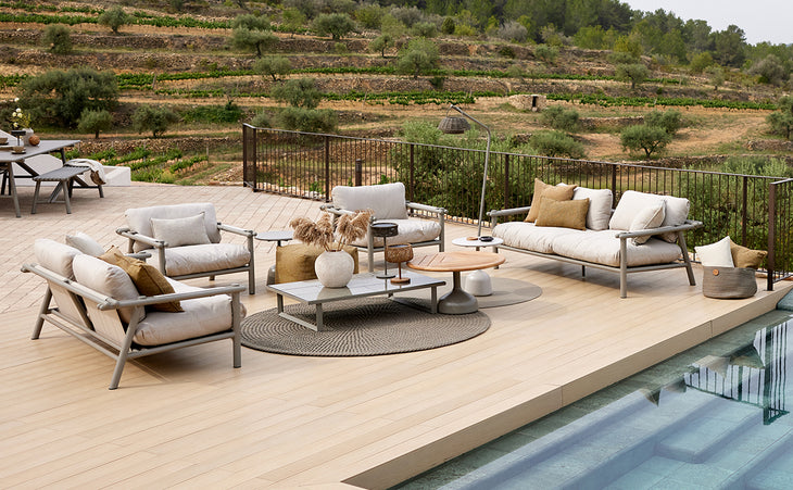 Be the ultimate host with the most with this beautiful furniture set. Seating up to 6 people comfortably, you'll be sure to impress your guests. The mix and match coffee tables provides practical surfaces, but also an interesting focal point at any given moment. The playful differences in height allow much space for food and drink, and the scatter cushions create that luxurious feeling of sinking back and relaxing.